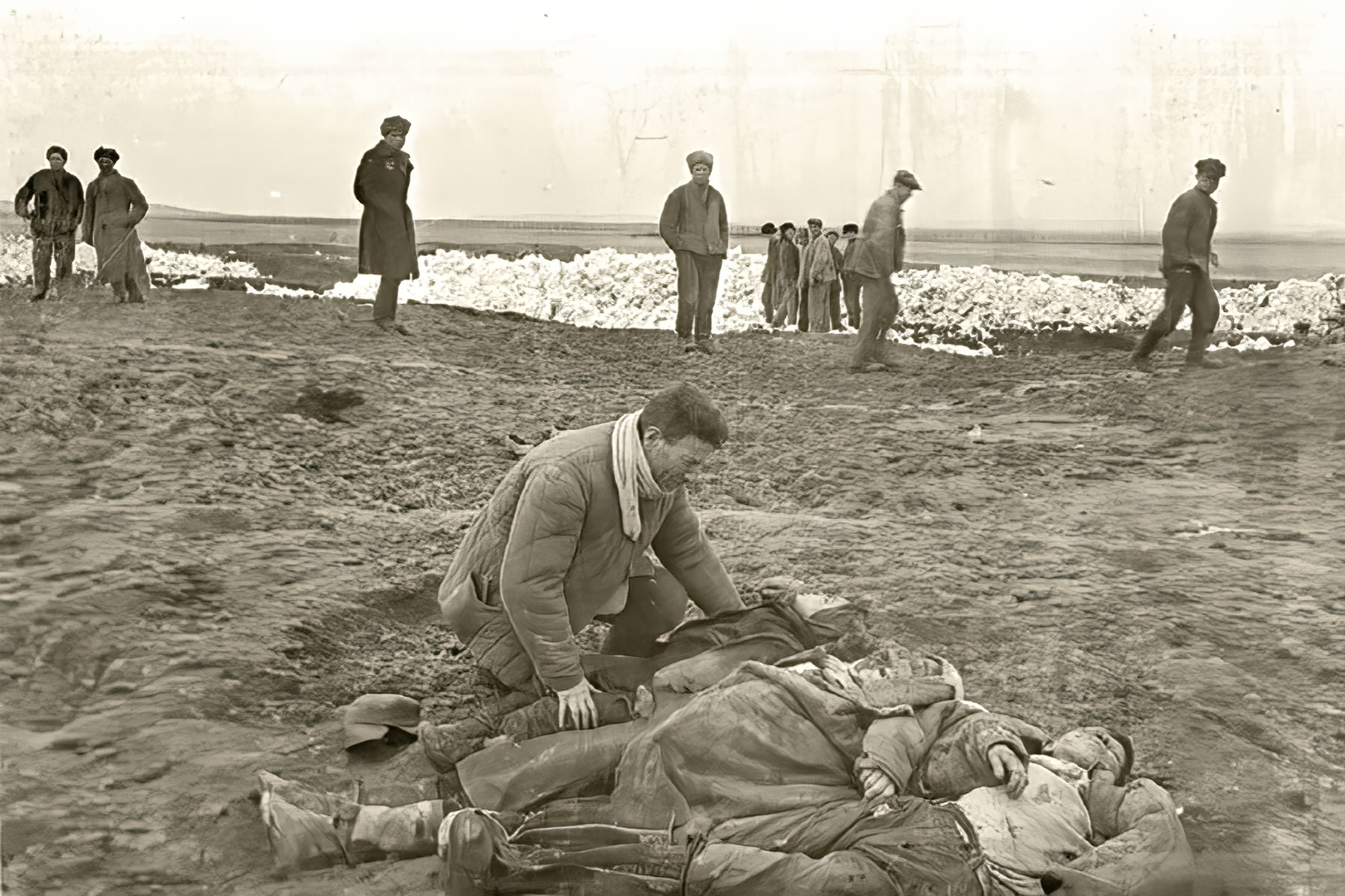 German atrocities Grief striken father cant beleive the sight of his murdered family by German soldiers 05