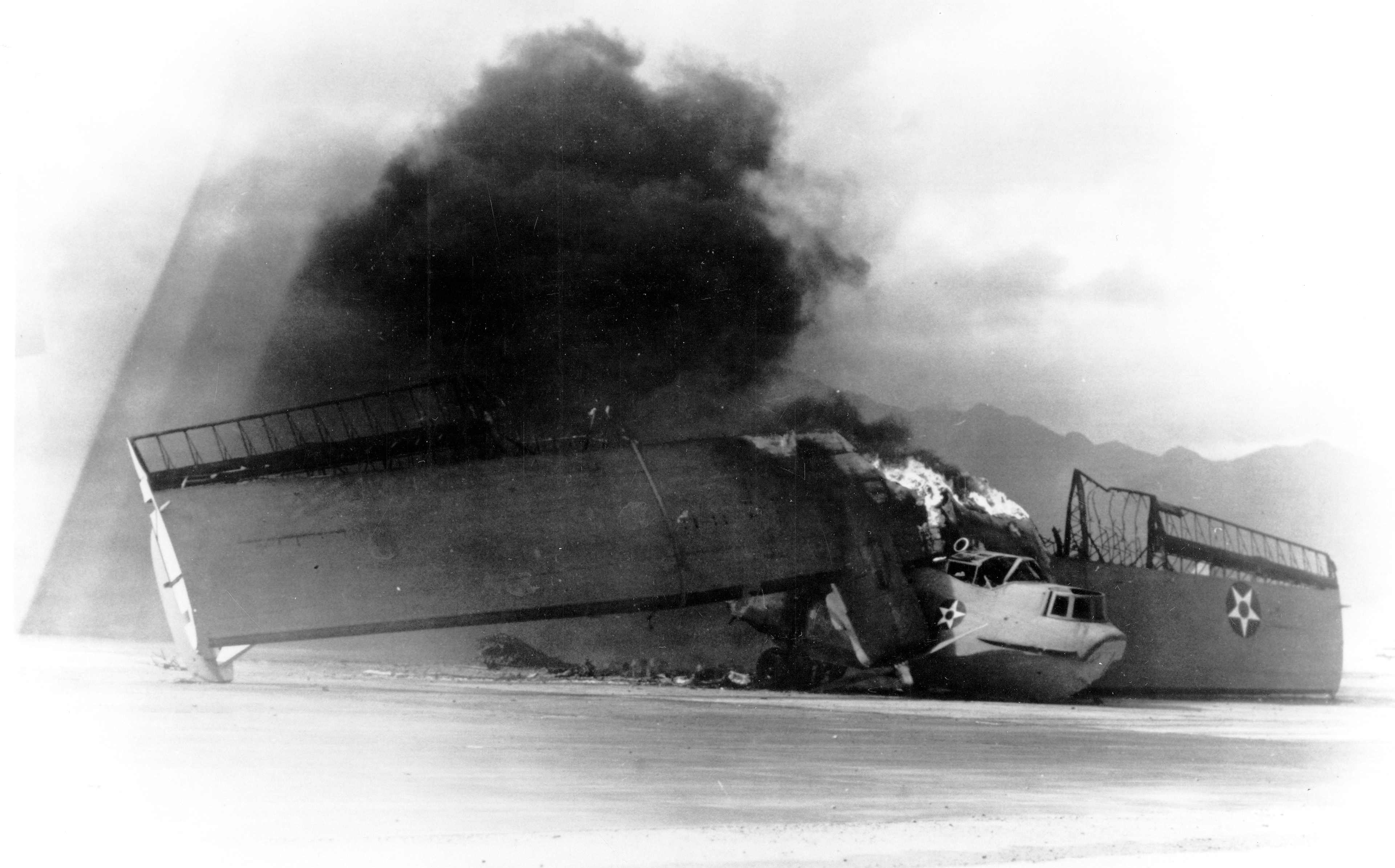 Burning PBY at Naval Air Station Kaneohe Bay Oahu Pearl Harbor Attack 7th Dec 1941 NH 97431