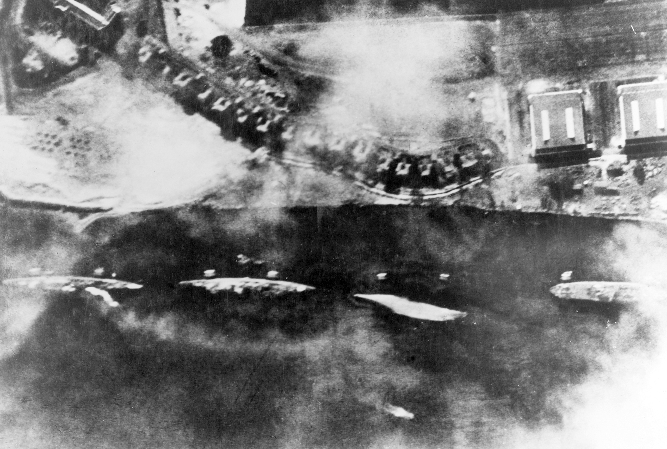 Japanese photo taken of western side of Ford Island Pearl Harbor 7th Dec 1941 NH 50933