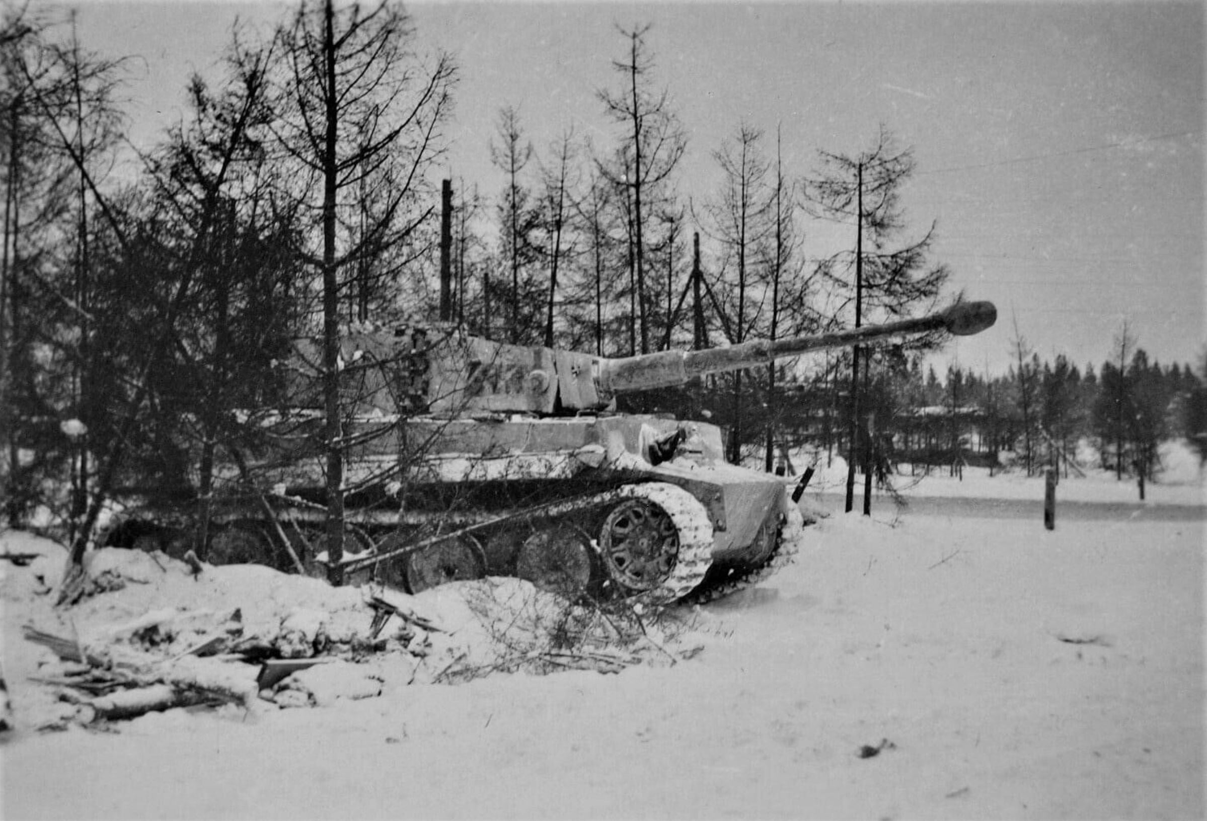 German armor Tiger I guards a road during winter 1944 ebay 01