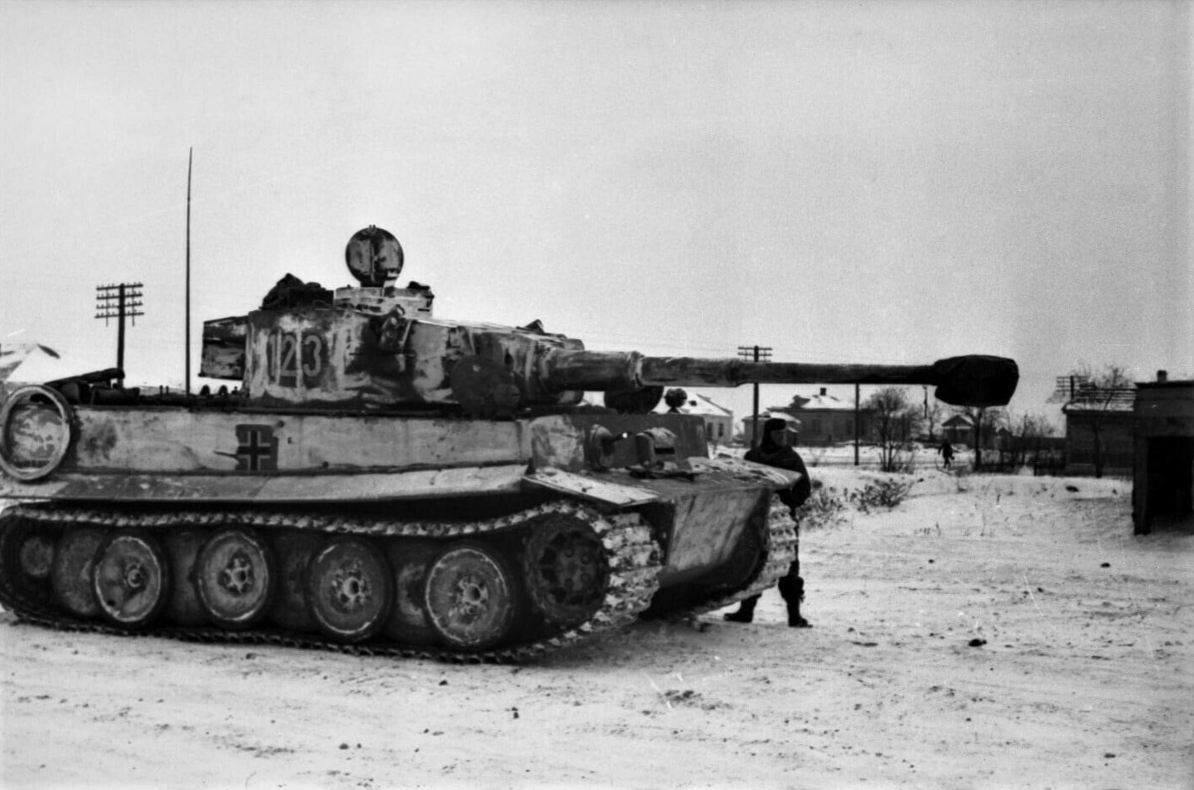 German armor Tiger I no 123 guards a road during winter 1943 ebay 01