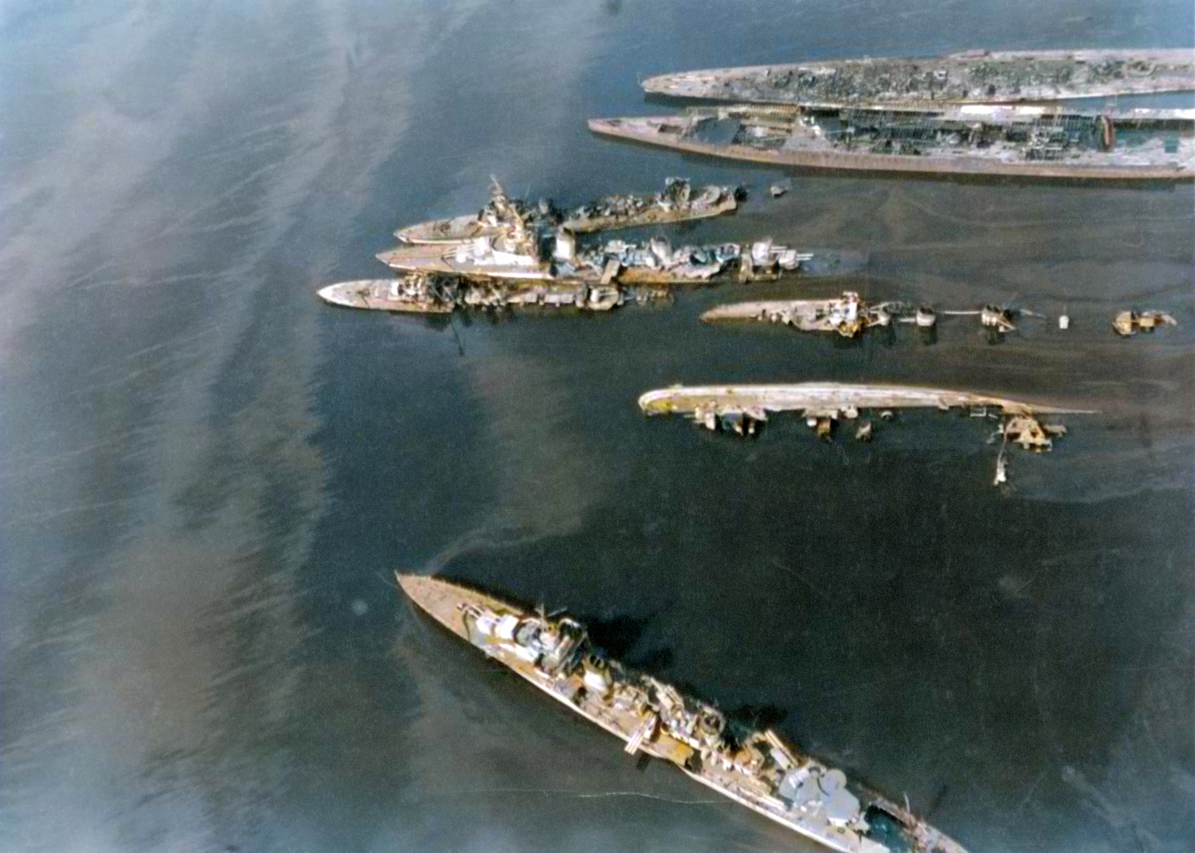 Aerial view of Casablanca harbour showing French sunken ships Toulon France 9th Nov 1942-NA299