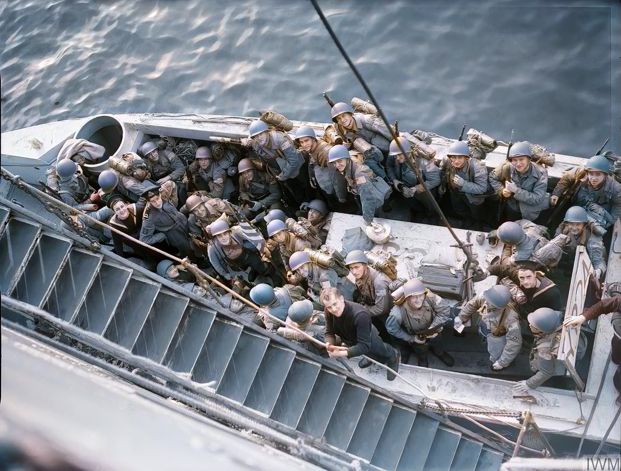 American troops boarding LCA 428 and LCA 447 from liner Reina Del Pacifico Nov 1942-IWM A12638