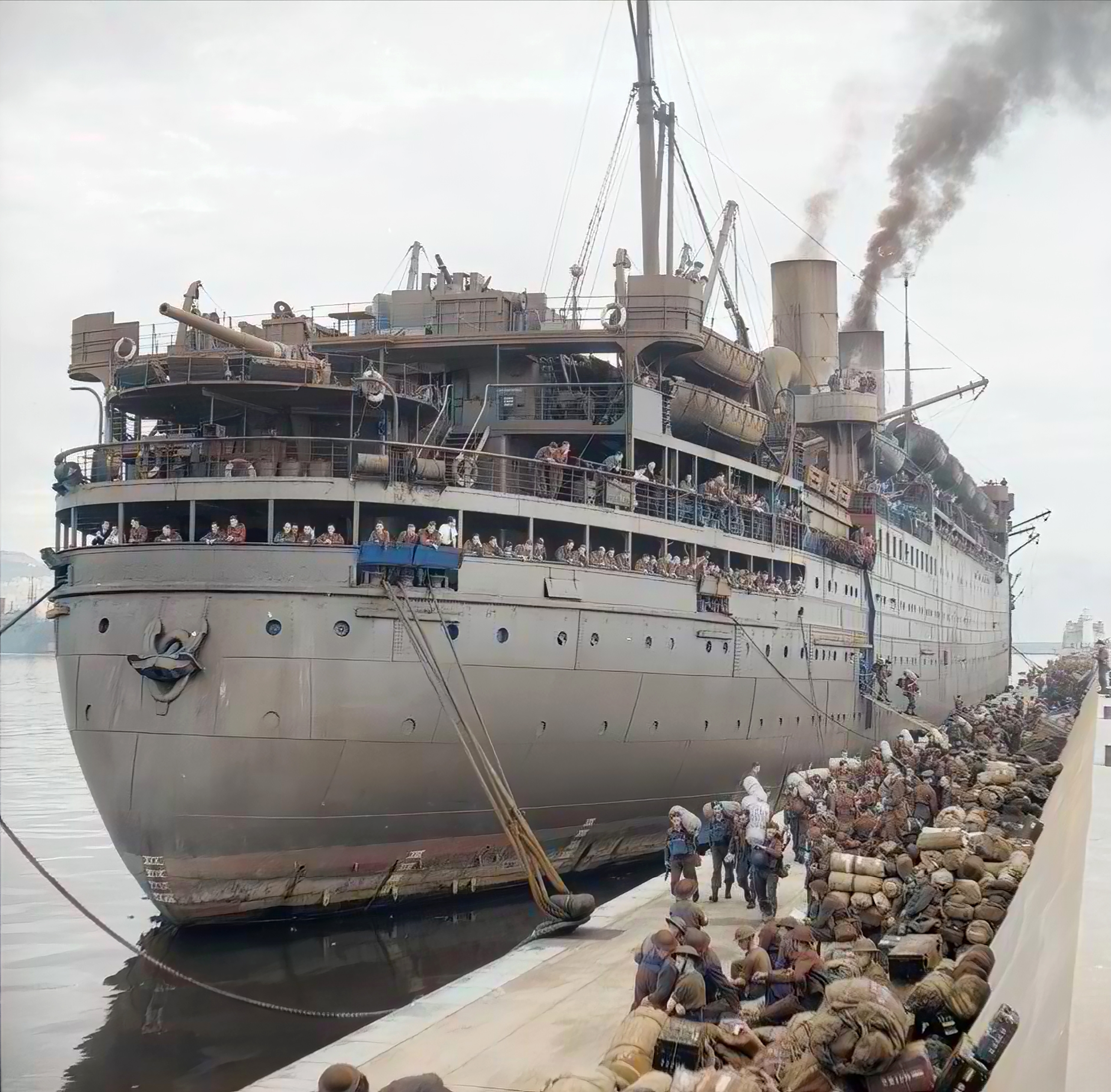 British troops disembarked from troopship SS Duchess of Richmond Algiers 14th Nov 1942-IWM NA109