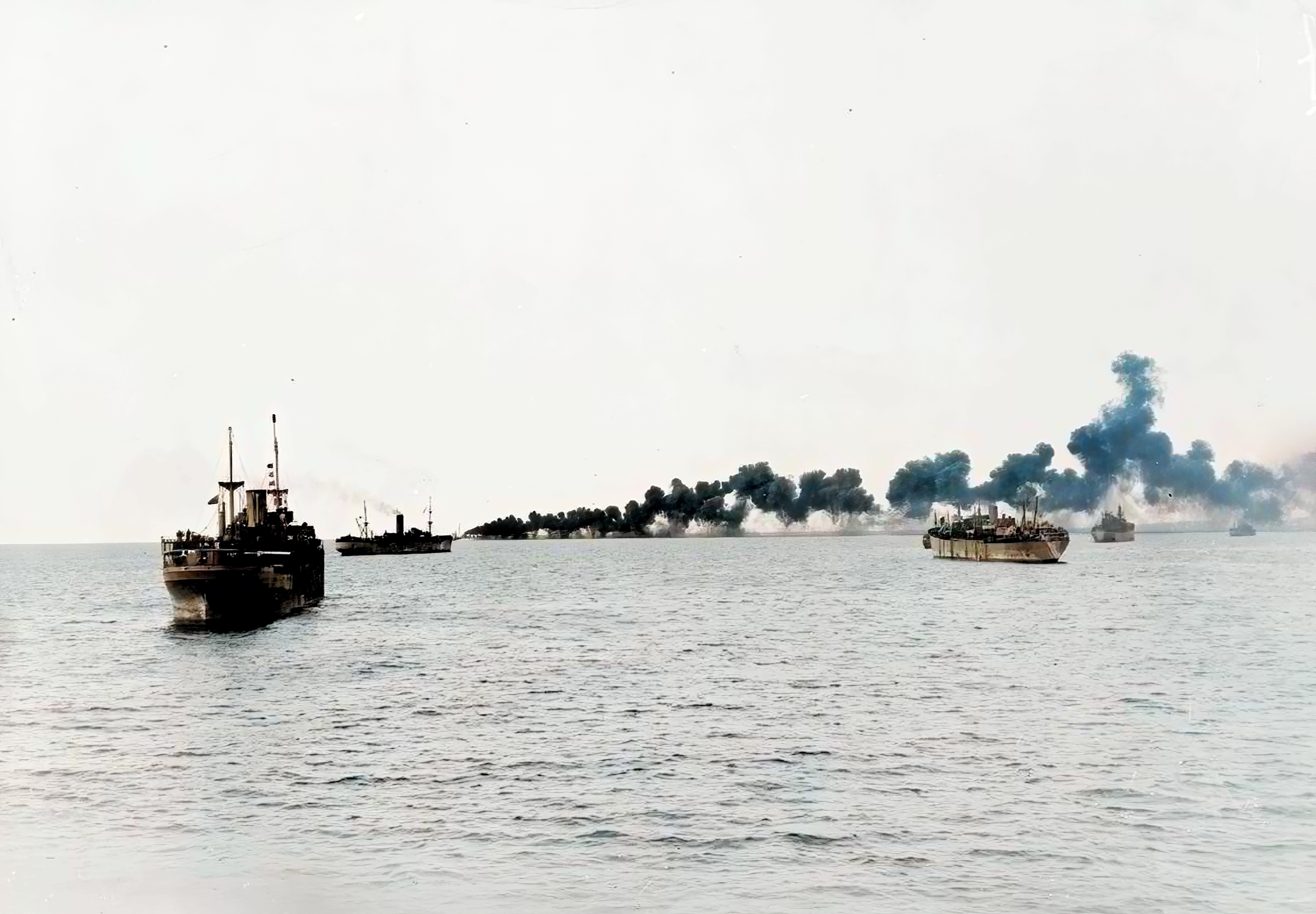 Destroyers laying a protective smoke screen round the transports off Algiers operation Torch 1942-IWM A12748