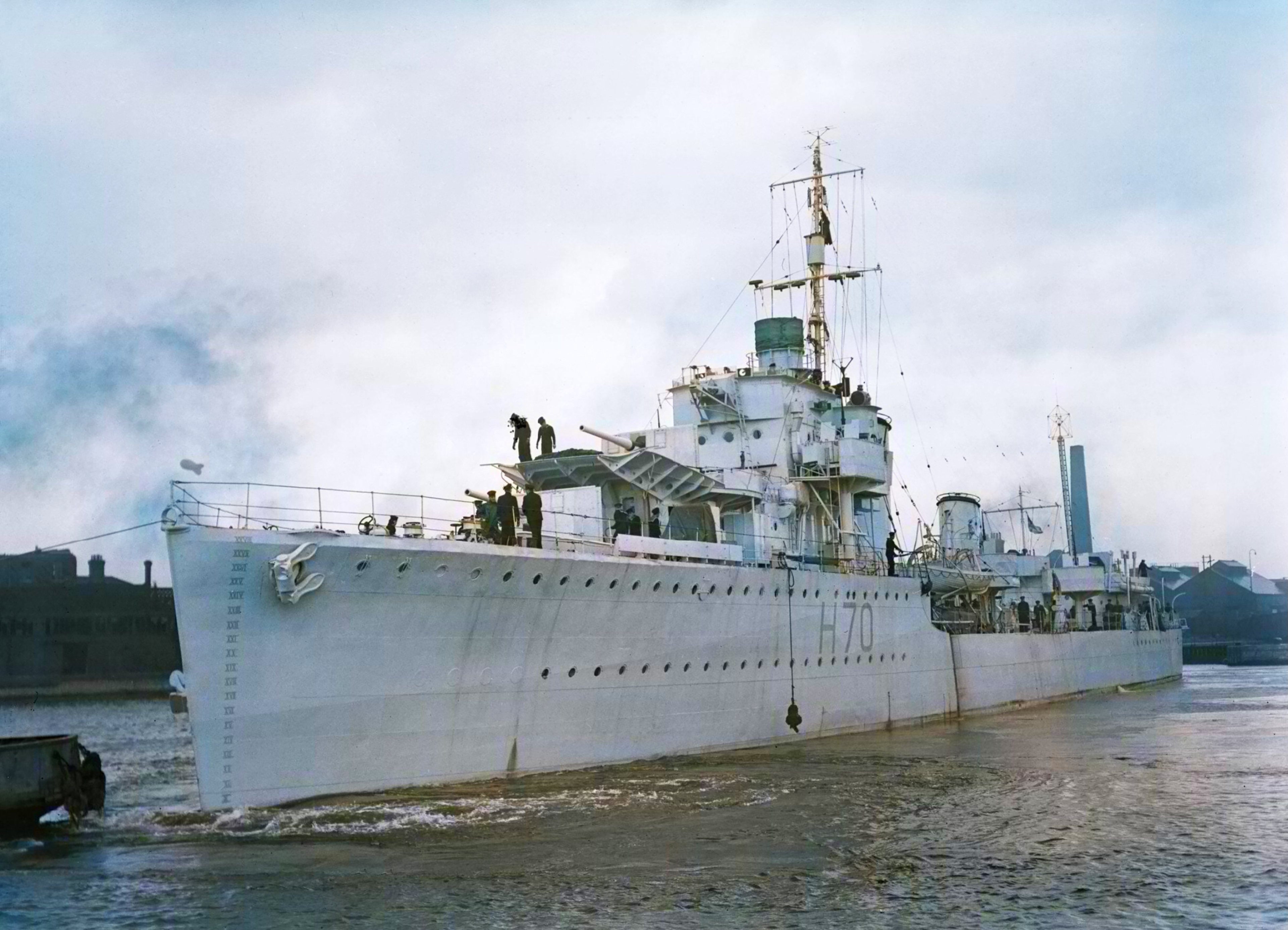 HMS Fortune who rescued the French Submarine Ajax crew off Morocco seen here at anchor in 1943