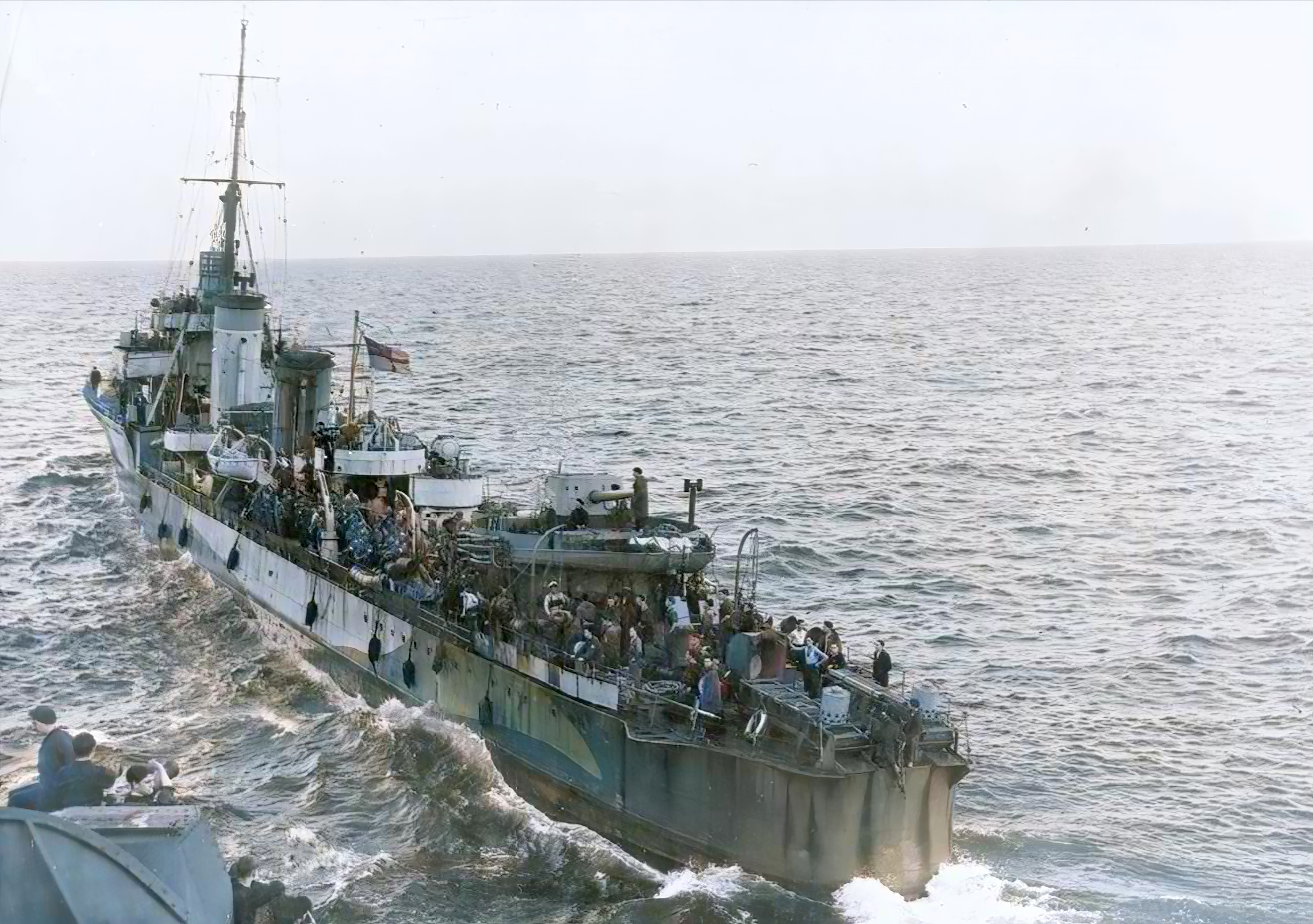 HMS Malcolm leaves HMS Sheffield to embark US troops for Algiers Op Torch 6 9th Nov 1942-IWM A12881