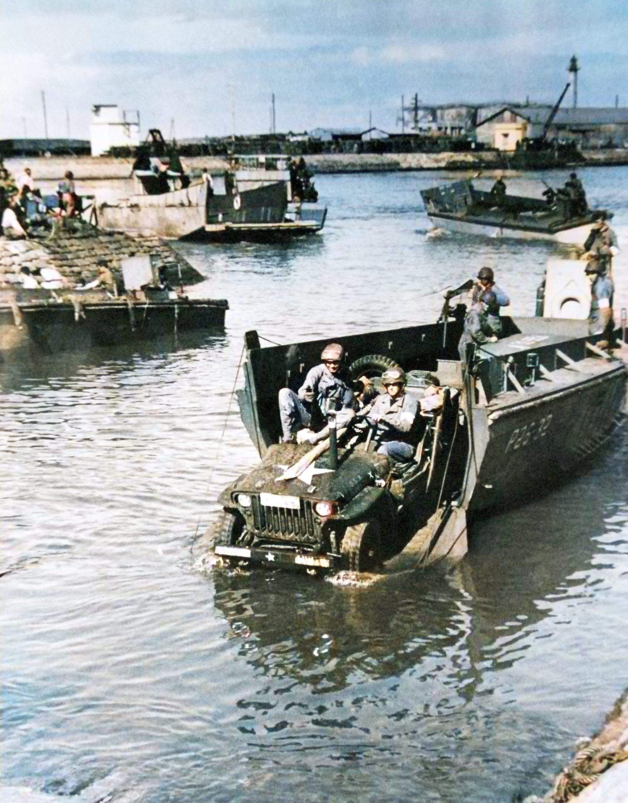 Jeep rolling off a landing boat at Fedala harbor during the landing operations Torch Nov 1942-Lot 11582 19