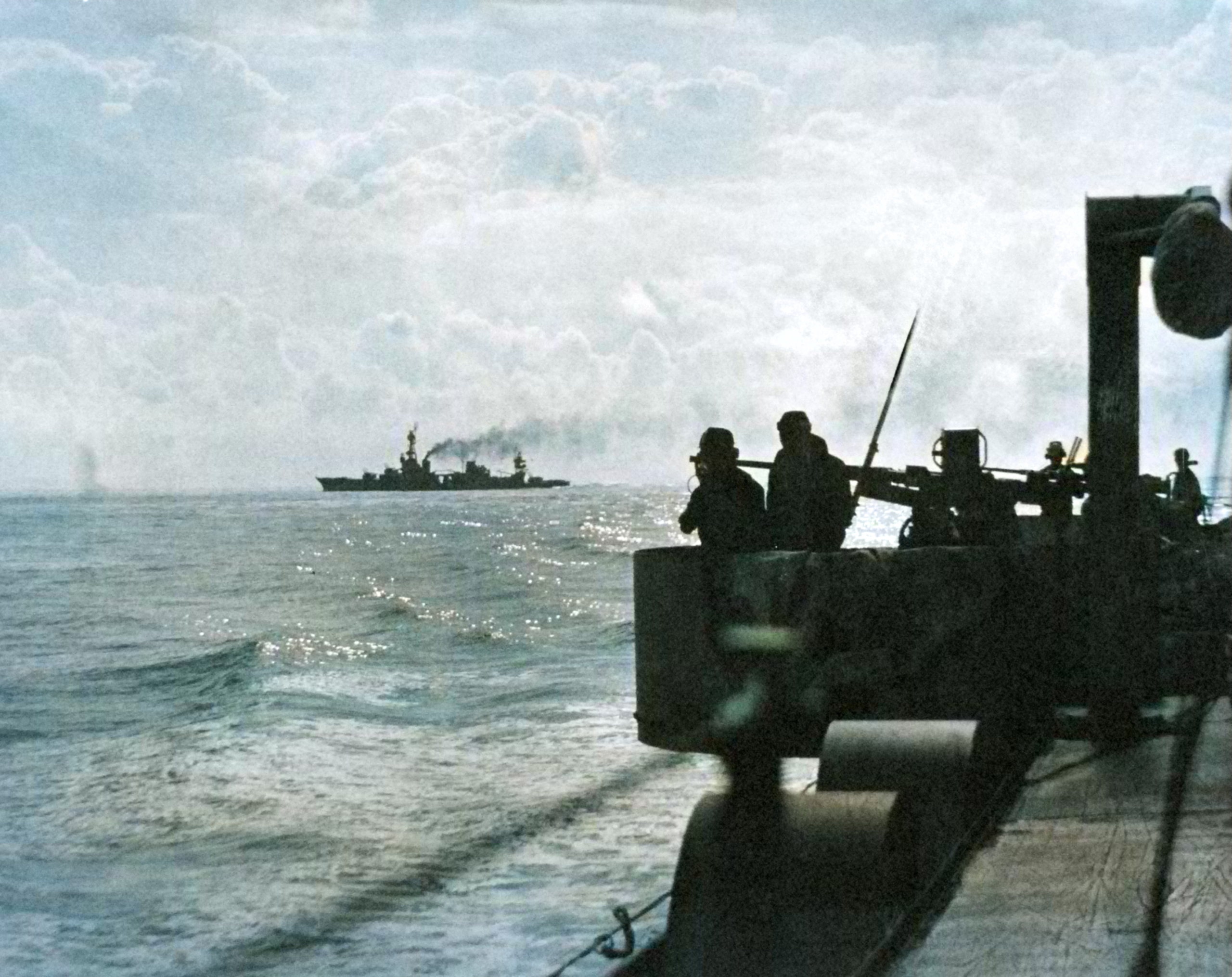 Naval Battle of Casablanca shells from the French battleship Jean Bart land near USS Augusta (CA 31) Nov 1942-80 G 30628