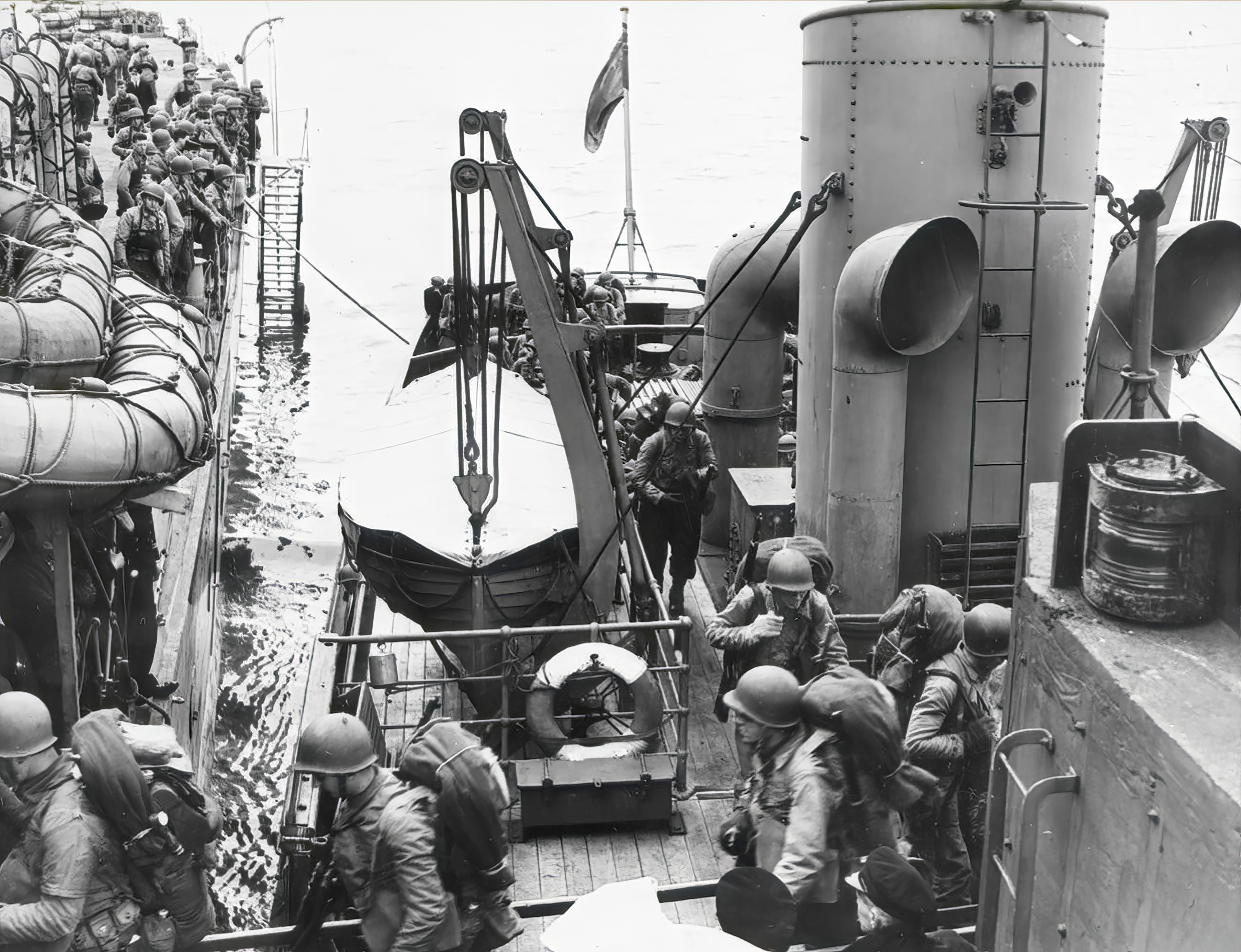 Operation Torch American troops embarking on HMS Sheffield for Algiers 6 9th Nov 1942-IWM A12884