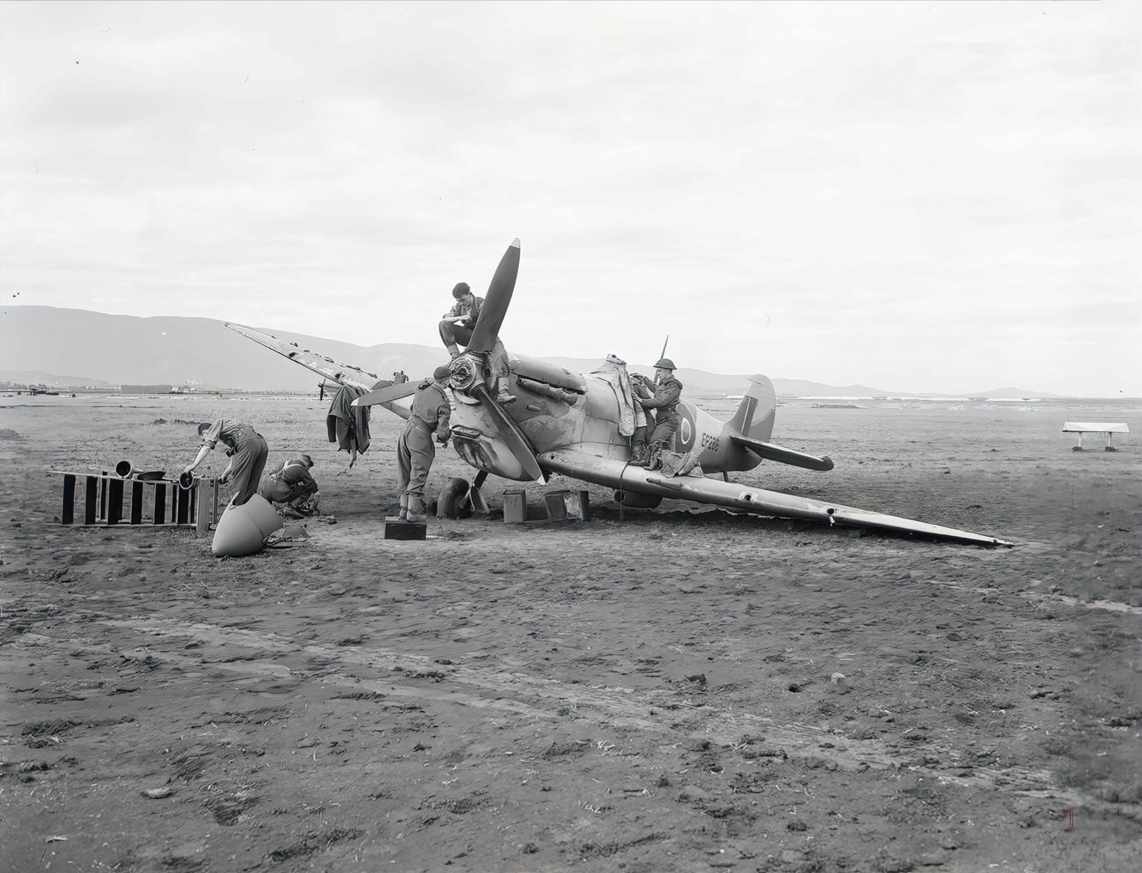 Spitfire VbTrop RAF 1435Sqn EP286 which suffered undercarriage failure on landing at Bone Algeria IWM CNA3983