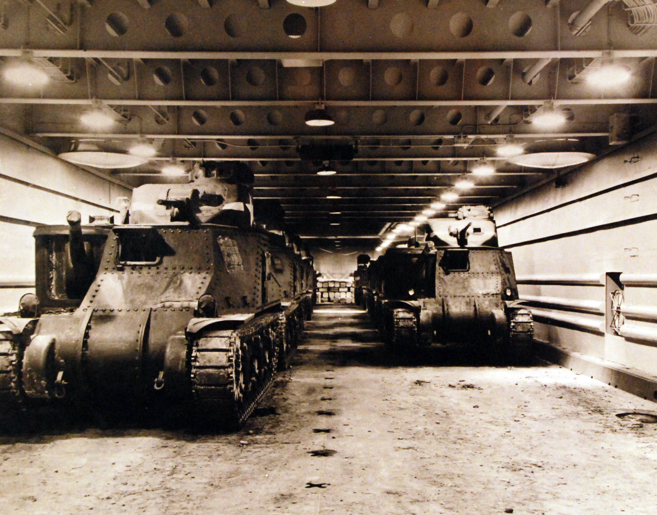 Stowage of tanks aboard a tank landing ship operation Torch 29th Nov 1942