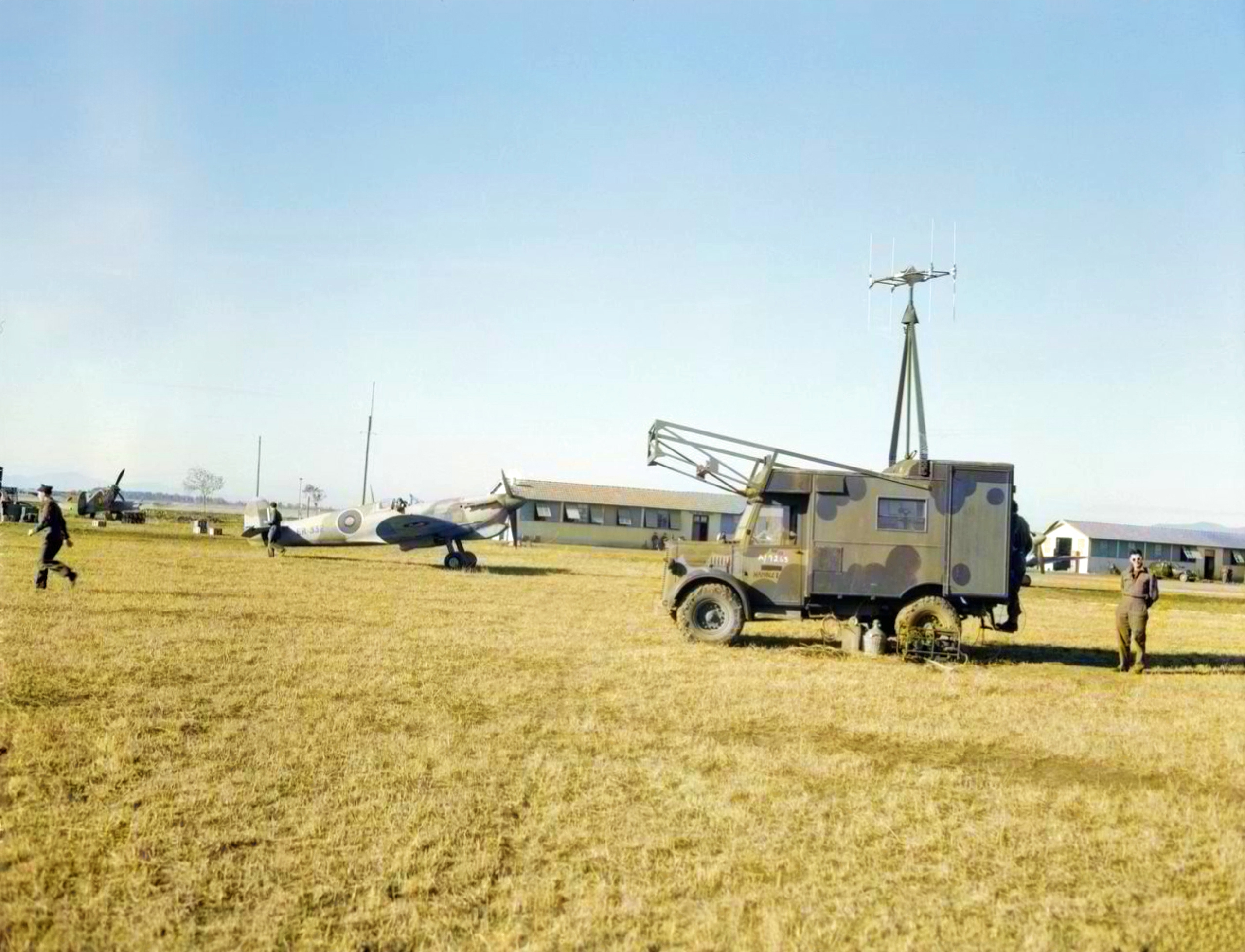 TORCH Spitfire VbTrop ER332 with a mobile Homer Station at work on the airfield at Bone Algeria Nov 1942-IWM CNA3978
