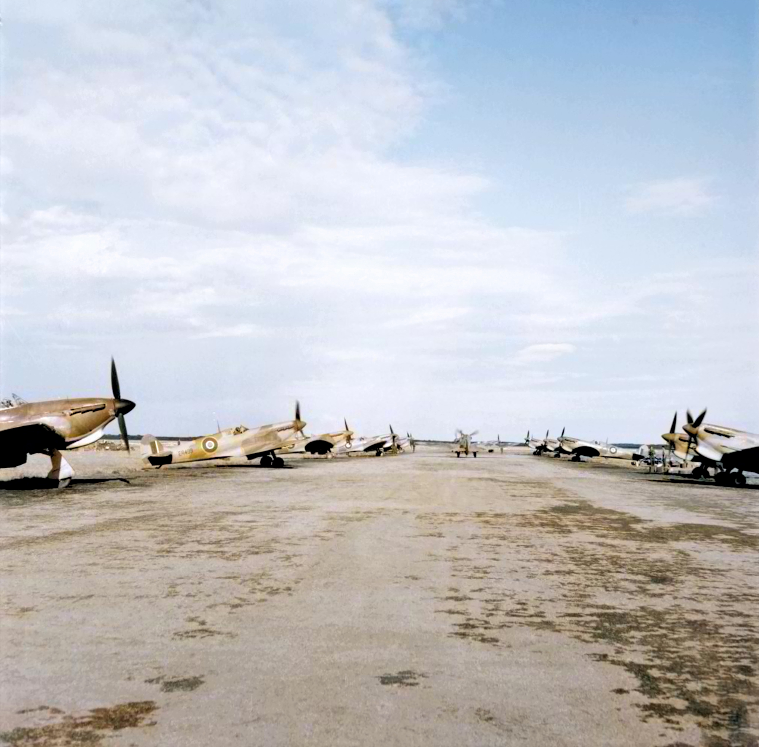 TORCH Spitfire VbTrops ER499 reinforcement aircraft from Gibraltar lined up at Bone Algeria 1942-IWM CNA3984
