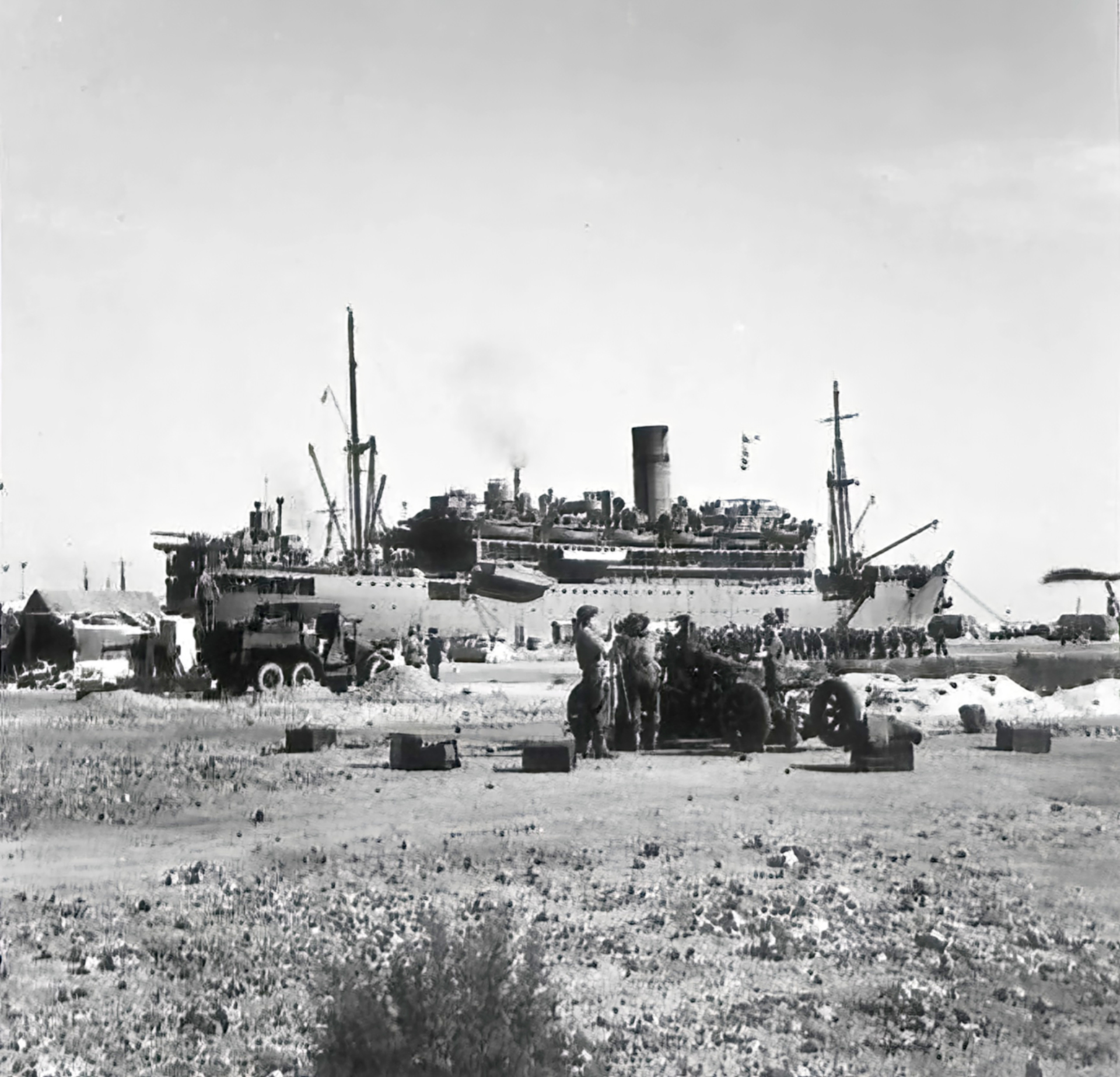 TORCH US 34th Infantry Division disembarking from a Royal Navy troopship at Algiers 9th Nov 1942-IWM NA67
