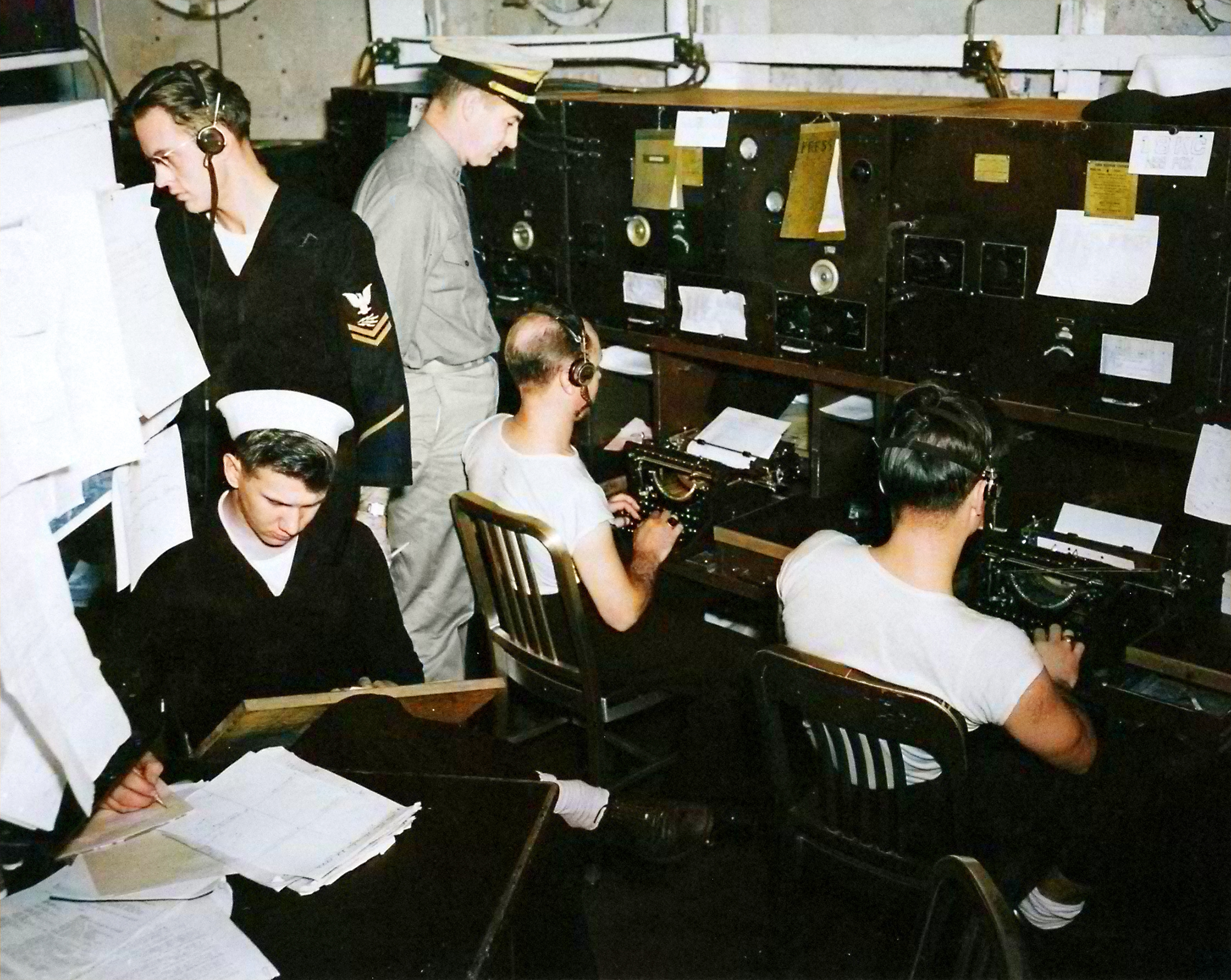 USS Augusta (CA 31) radio room aboard the cruiser while en route to Morocco 80 G 30469