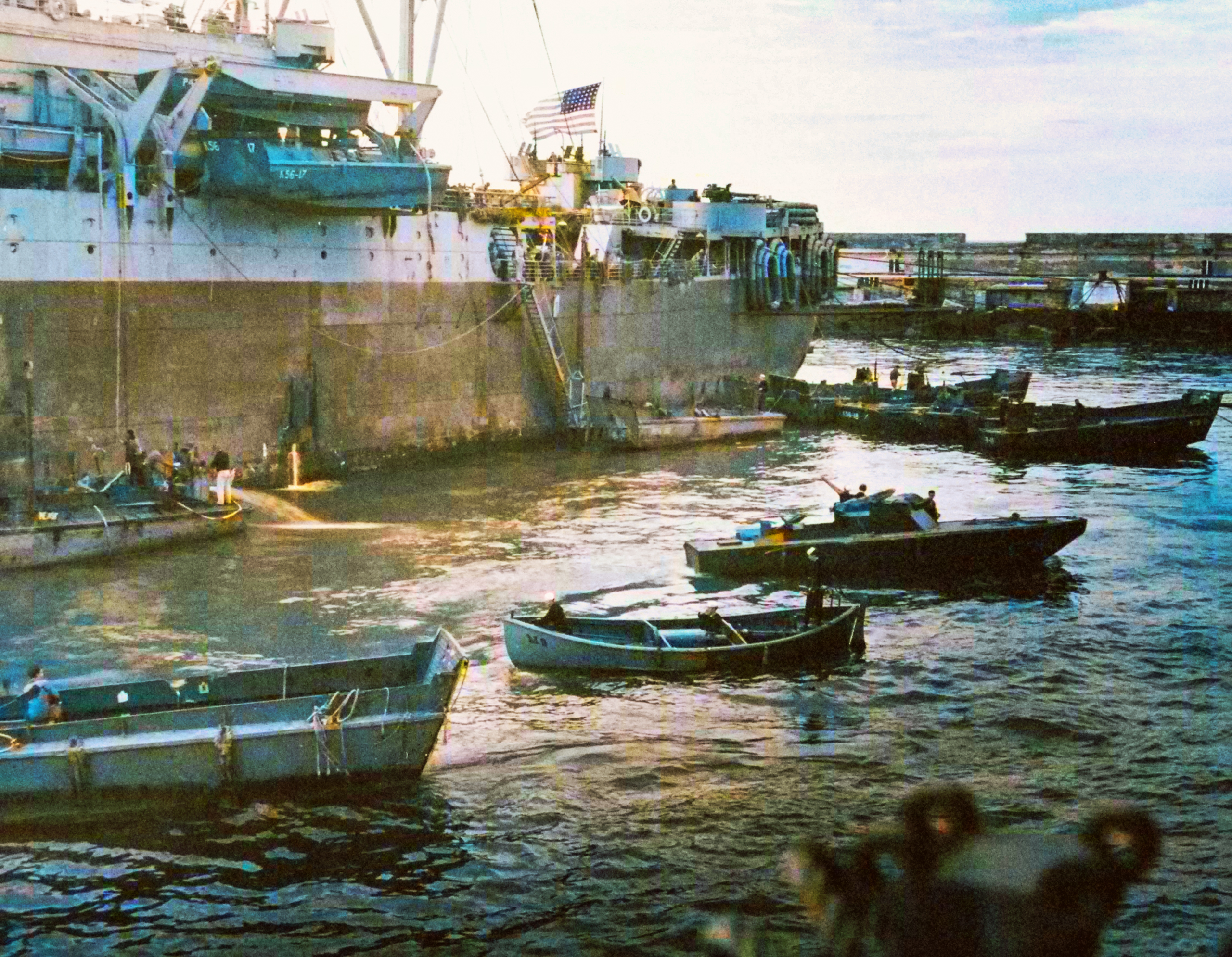 USS Harry Lee (AP 17) tank lighters and support craft at Casablanca Morocco 13th Nov 1942-80 G 30676