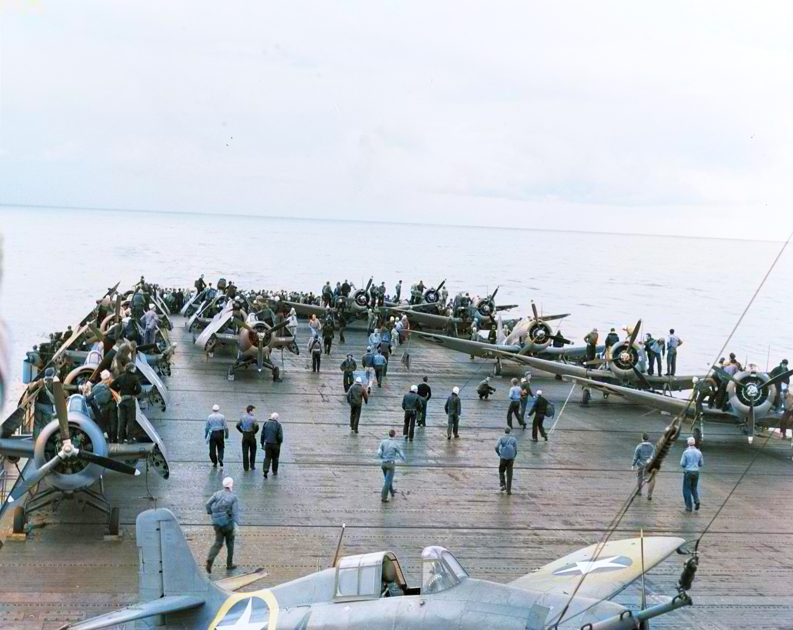 USS Ranger (CV 4) rush aft to look for a submarine during operation Torch Nov 1942 80 G 30299