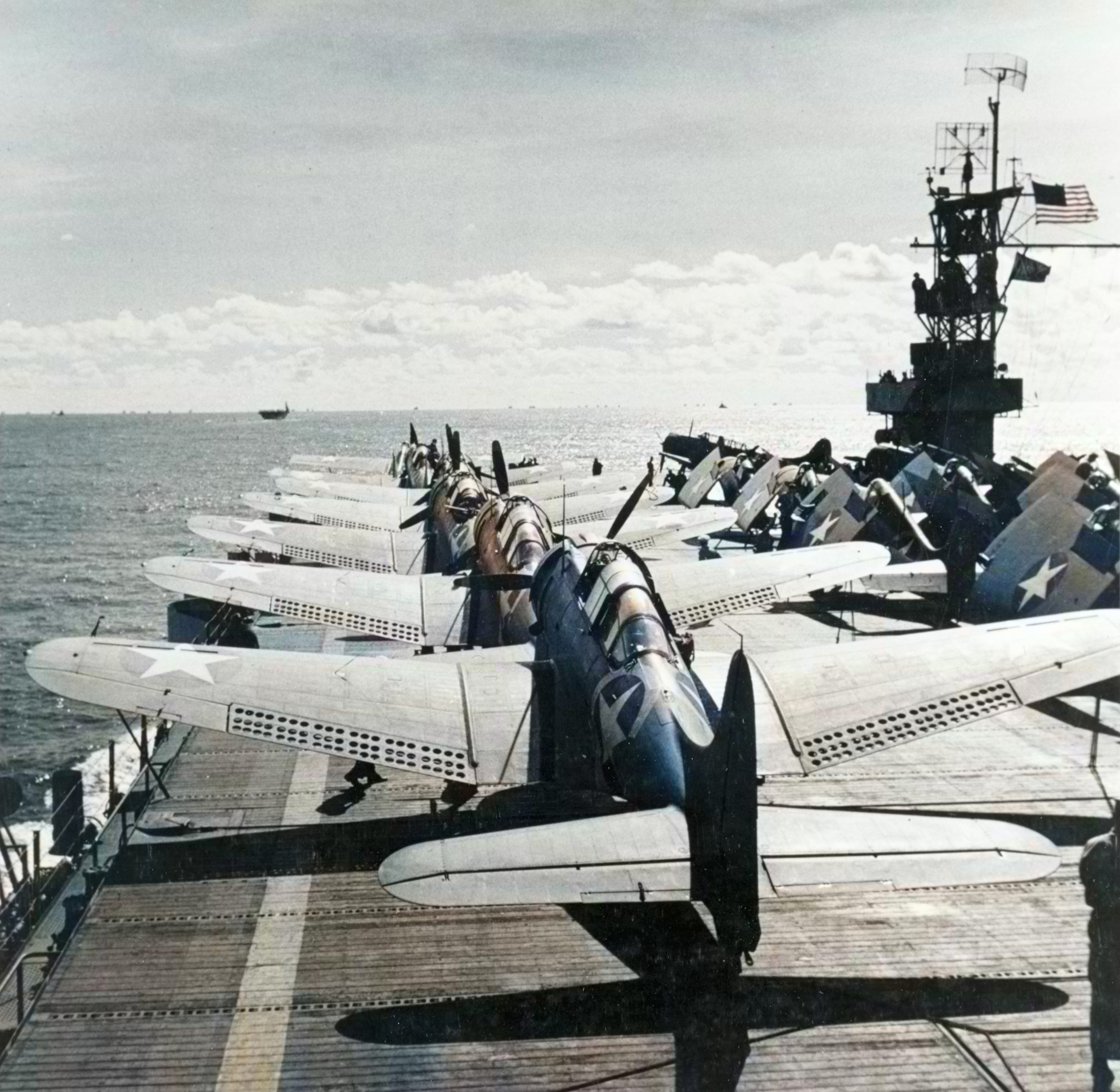 USS Santee (CVE 29) flight deck with SBD 3 Dauntless and F4F 4 Wildcats Torch Nov 1942 80 G 470022