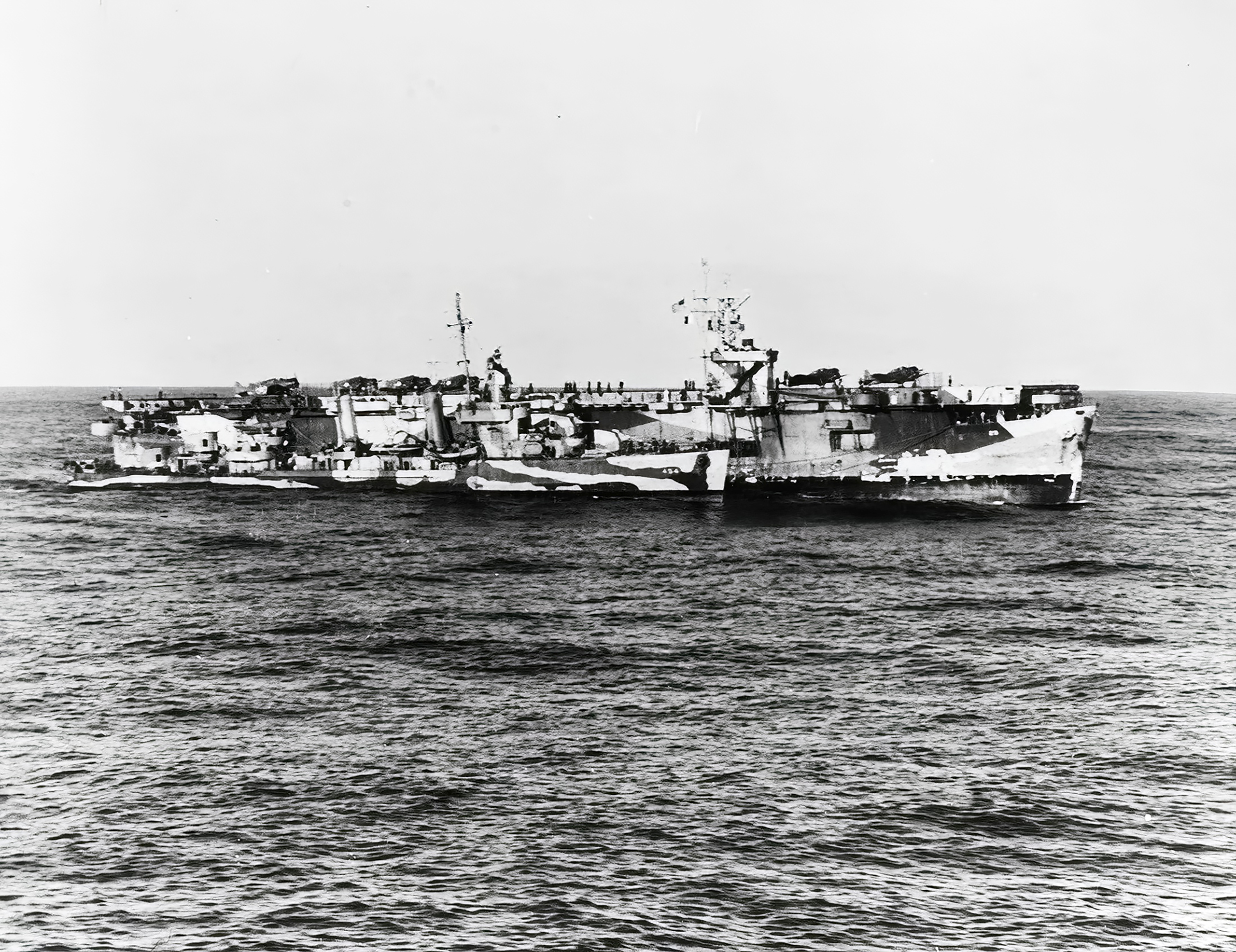 USS Santee (CVE 29) refuels USS Ellyson DD 454 at sea during operation Torch Nov 1942-80 G 30344