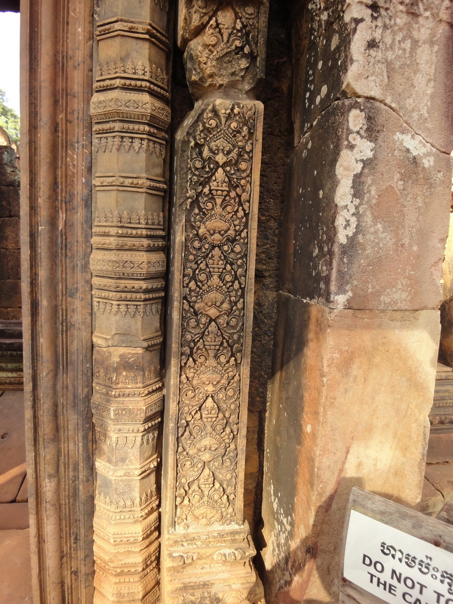 Banteay Srei Hindu Temple red sandstone carved pillars 07