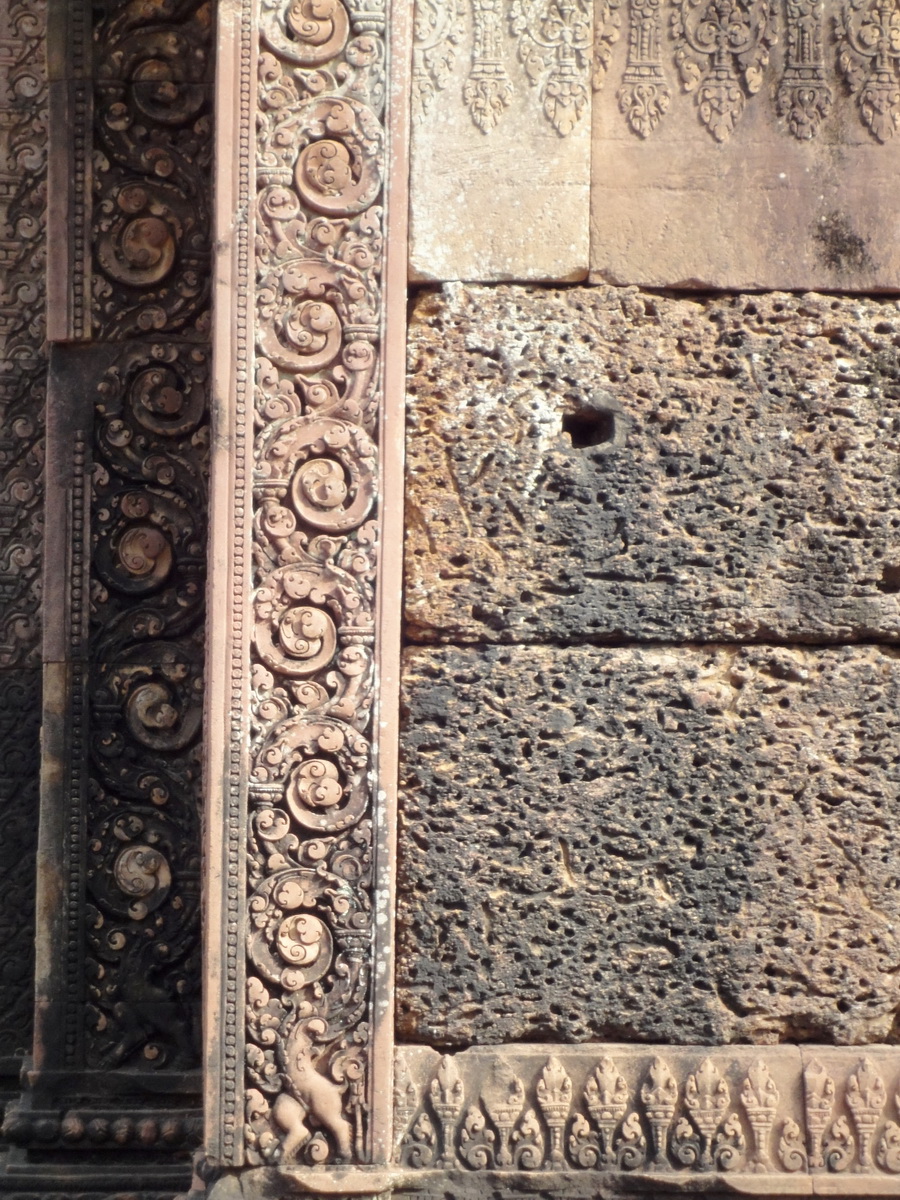 Banteay Srei Hindu Temple red sandstone carved pillars 08