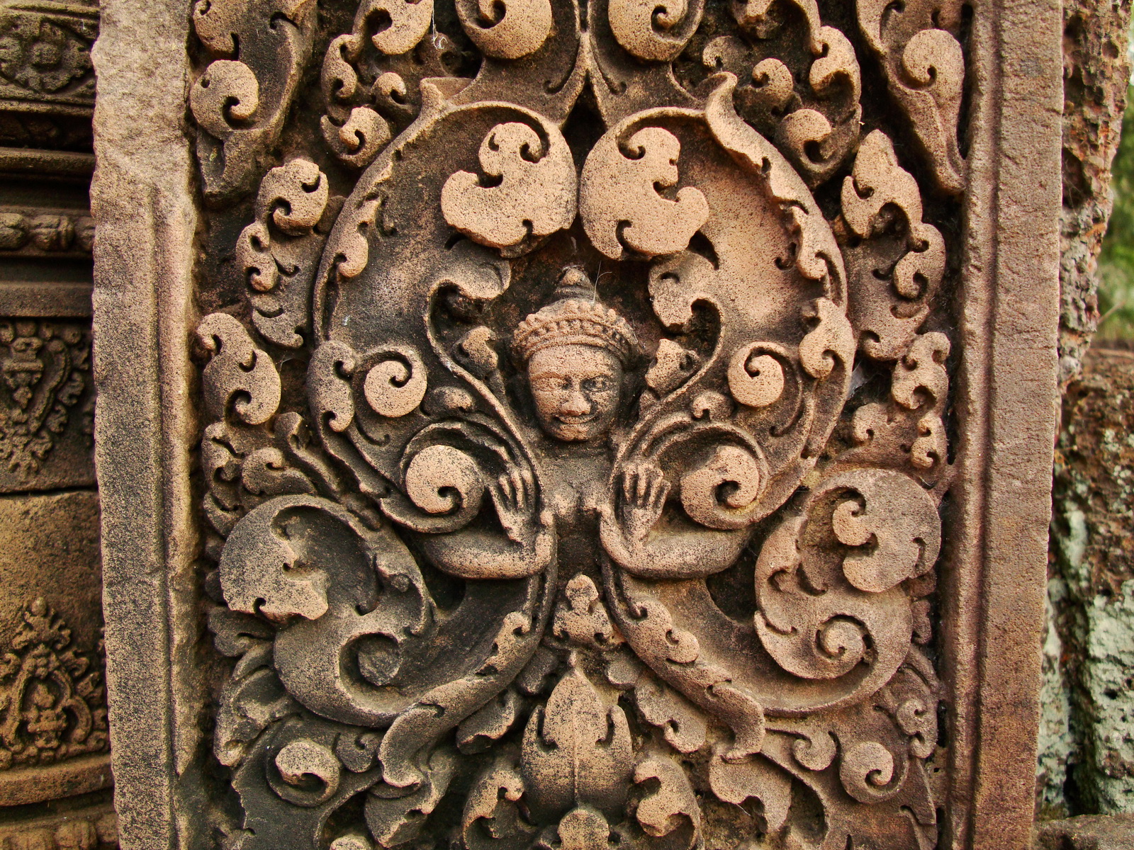 Banteay Srei Hindu Temple red sandstone carved pillars 12