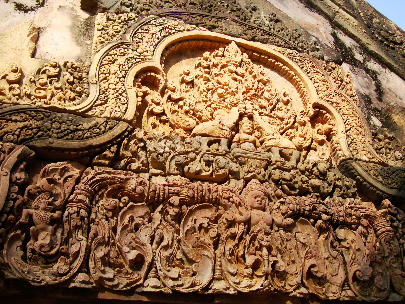 Banteay Srei Temple closeups of the innately carved sandstone arches 08