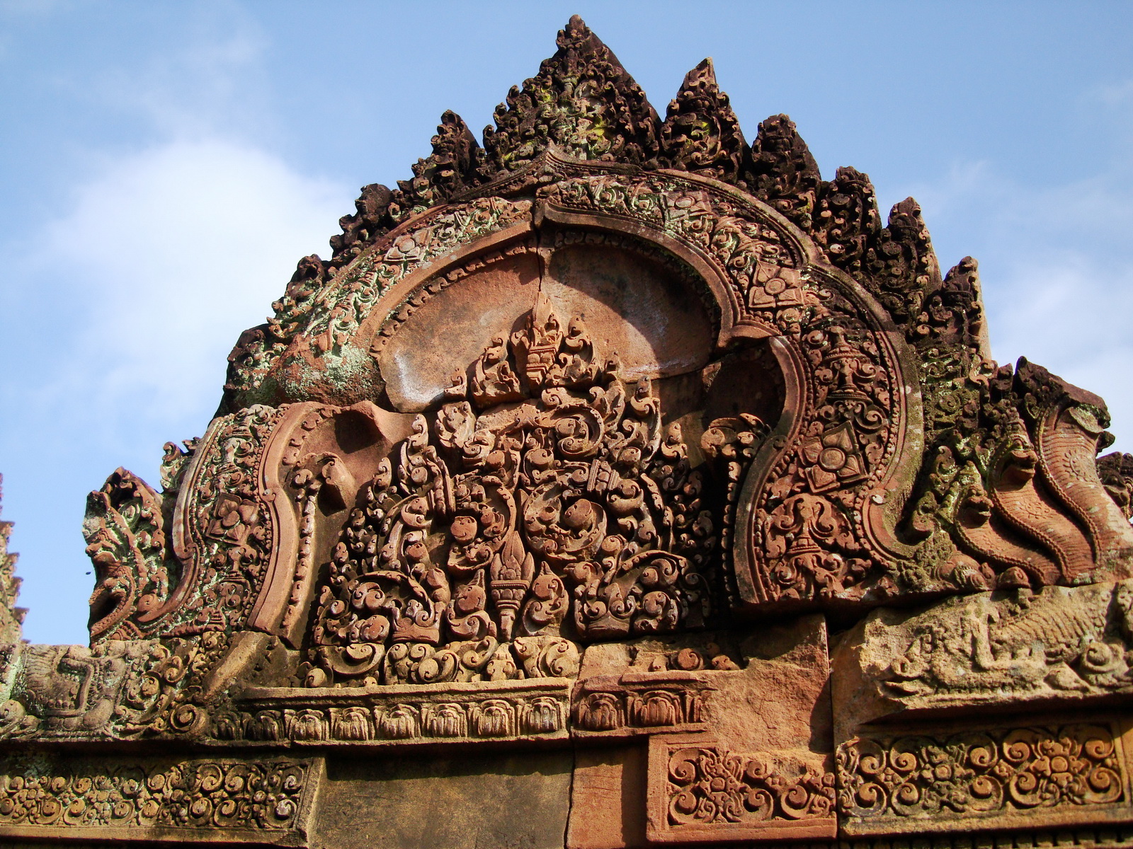 Banteay Srei Temple closeups of the innately carved sandstone arches 13