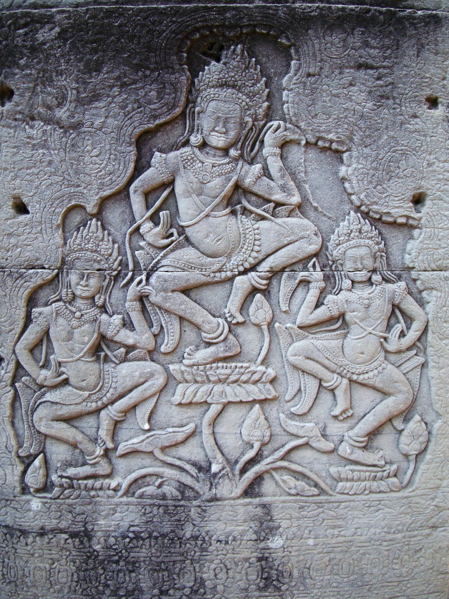 Bayon Temple Bas relief pillars three dancing apsaras Angkor 12