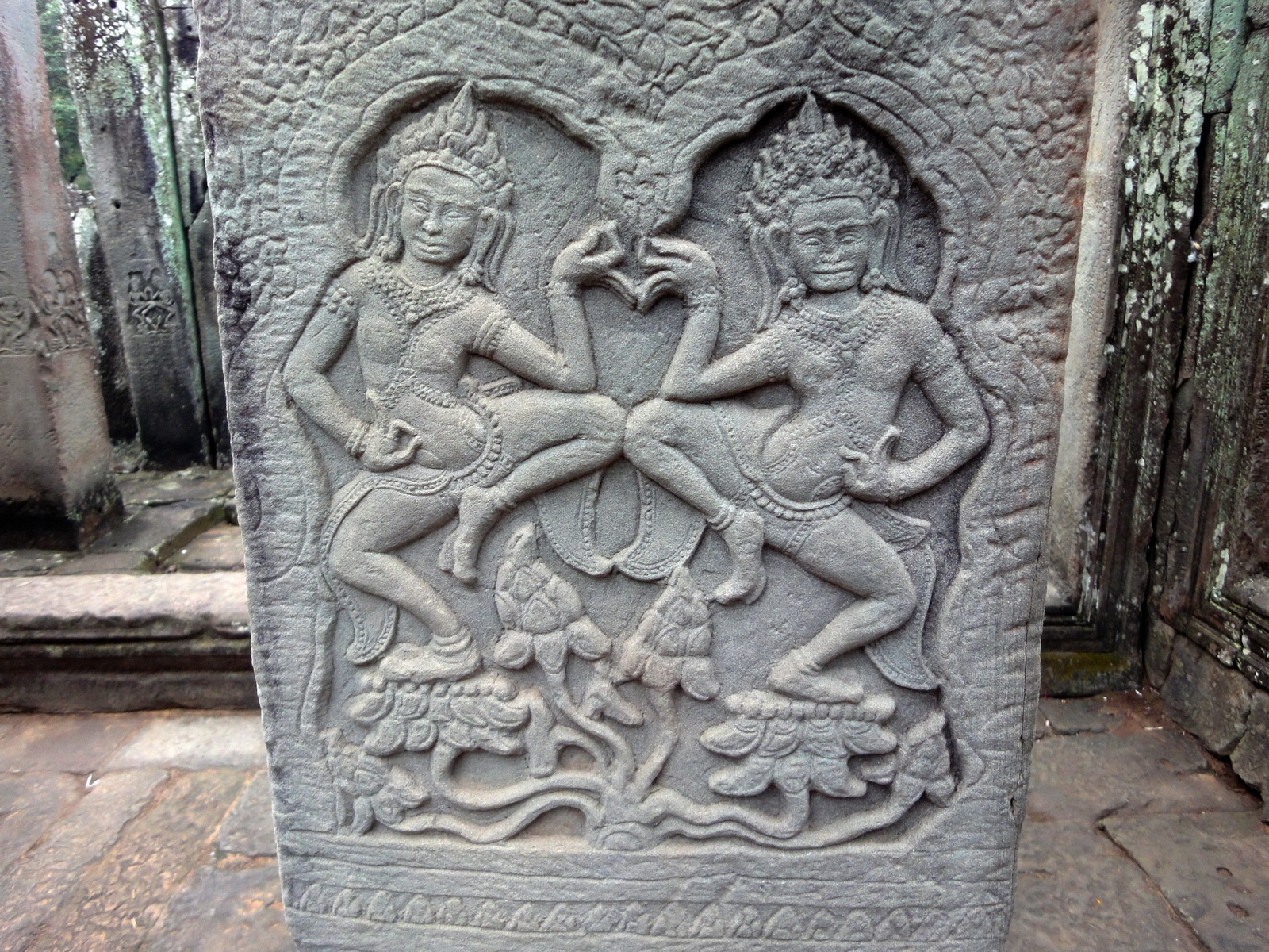Bayon Temple Bas relief pillars two dancing apsaras Angkor 05