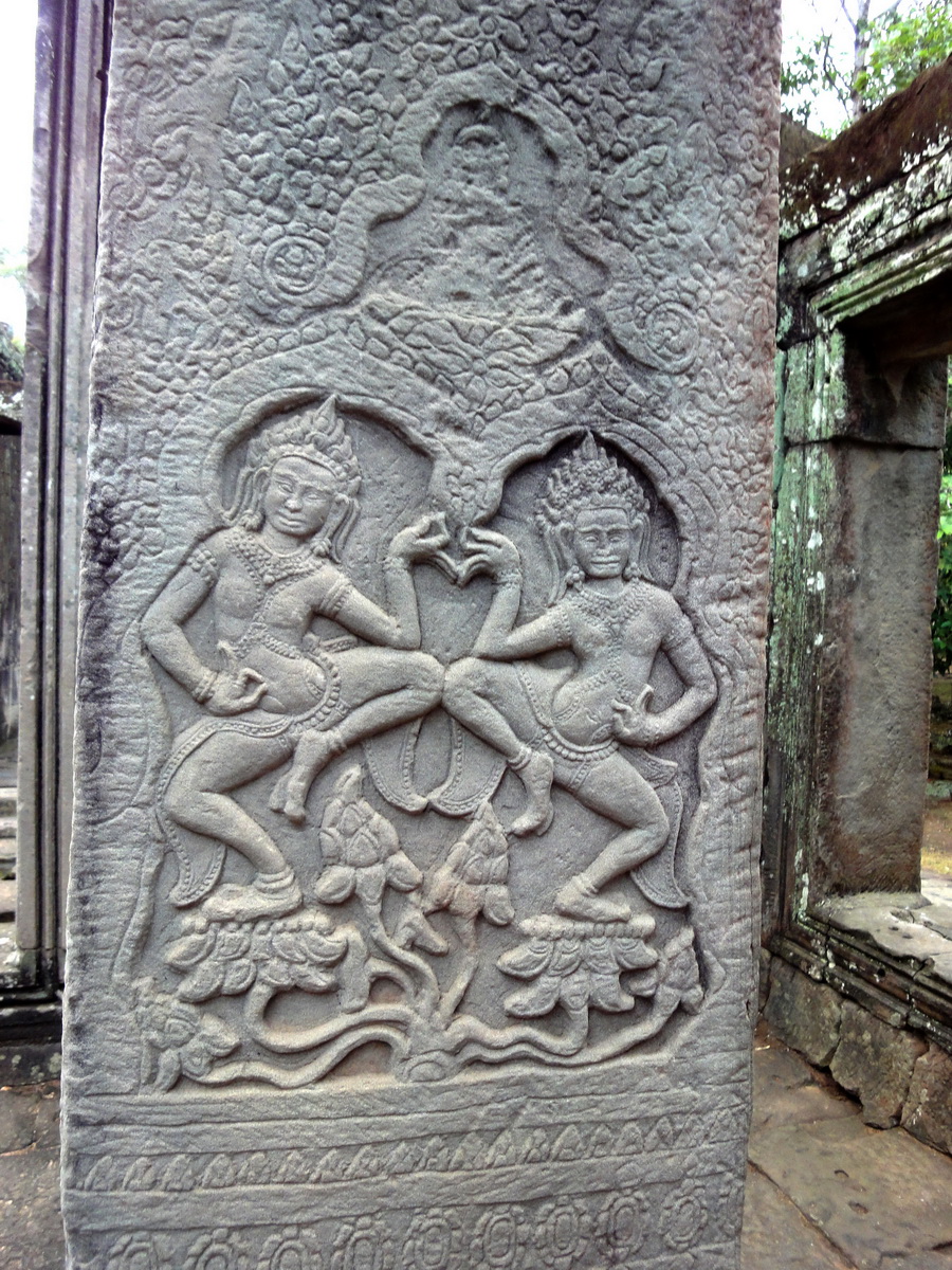 Bayon Temple Bas relief pillars two dancing apsaras Angkor 08