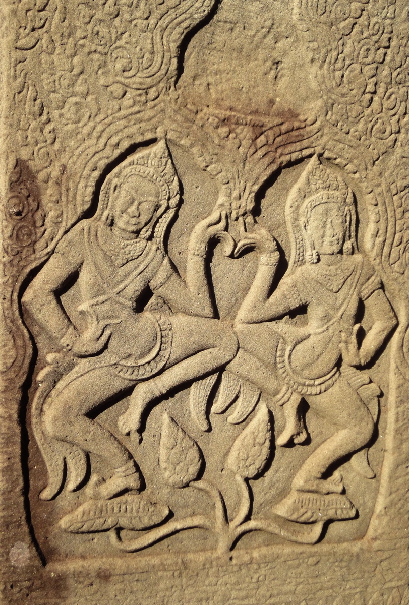 Bayon Temple Bas relief pillars two dancing apsaras Angkor 09