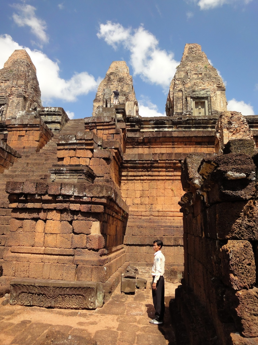 Facing West Pre Rup Temple central towers stairs East Baray 2010 02