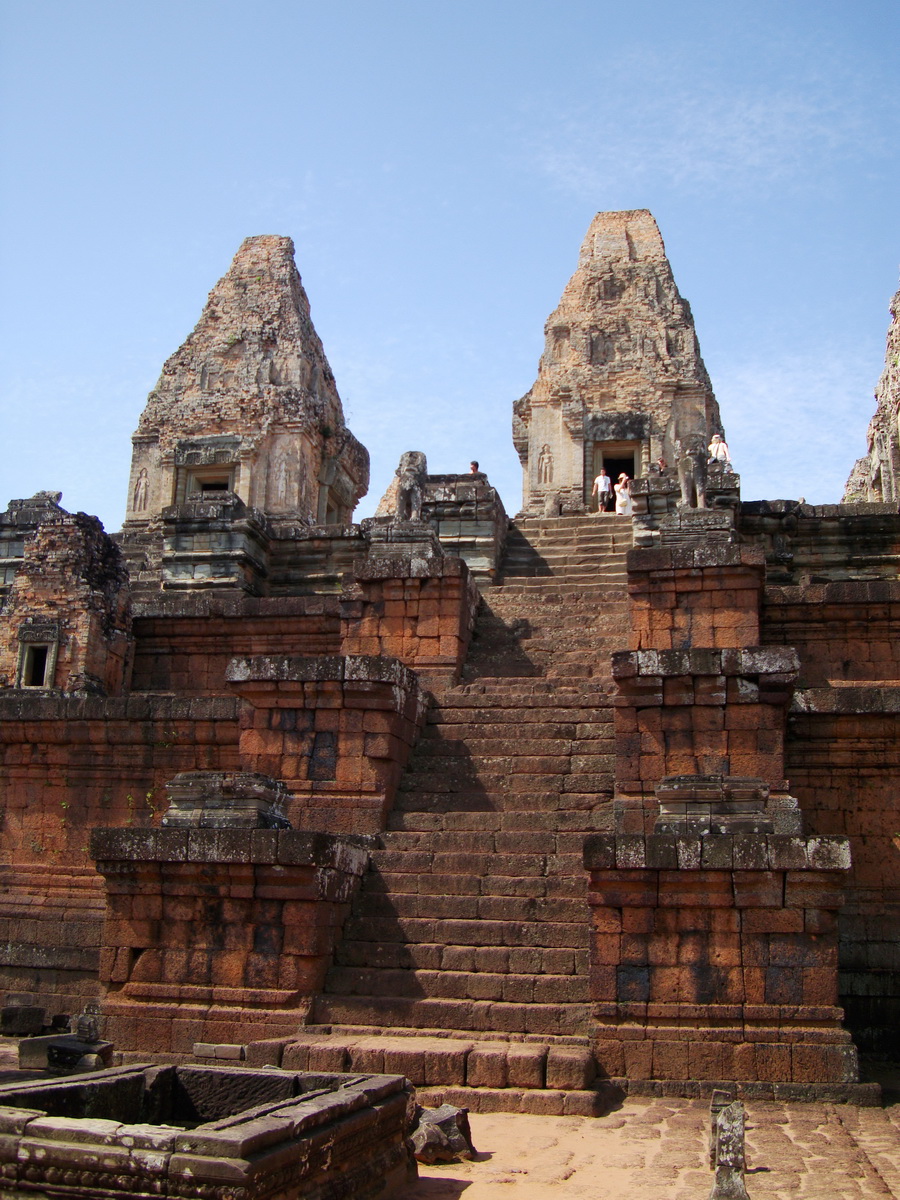 Facing West Pre Rup Temple central towers stairs East Baray 2010 04