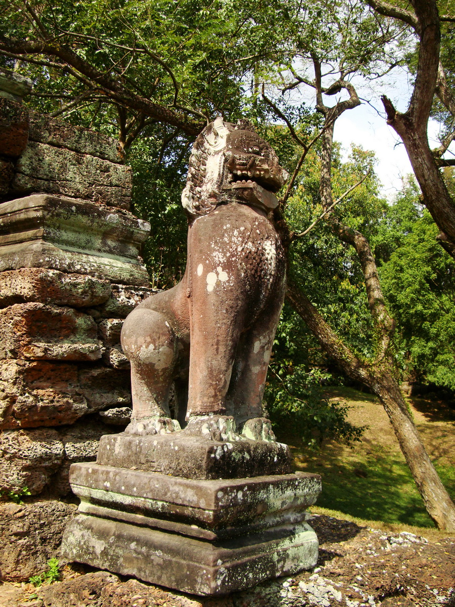 Preah Khan Bas relief 12th ce Khmer Style lion carvings 02