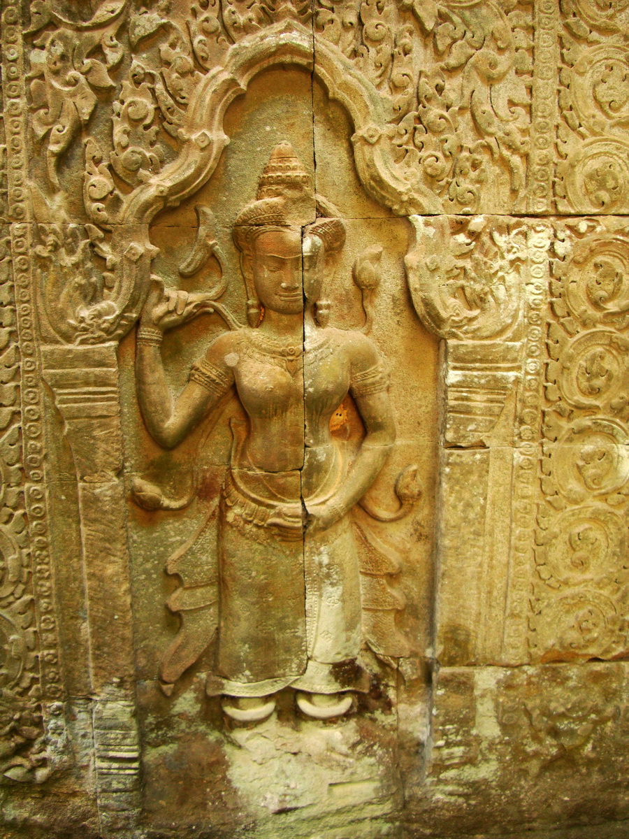 Preah Khan Temple Bas relief female divinty main enclosure 03