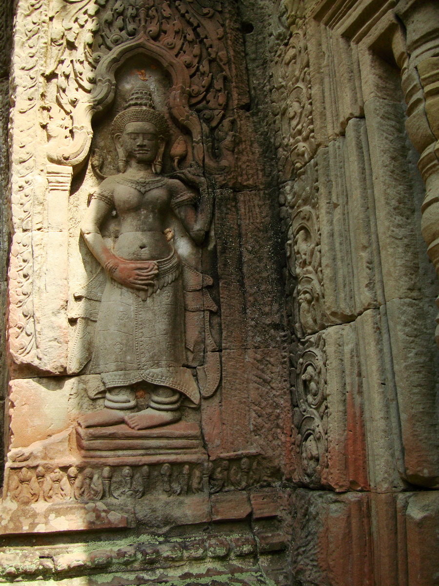 Preah Khan Temple Bas relief female divinty main enclosure 05