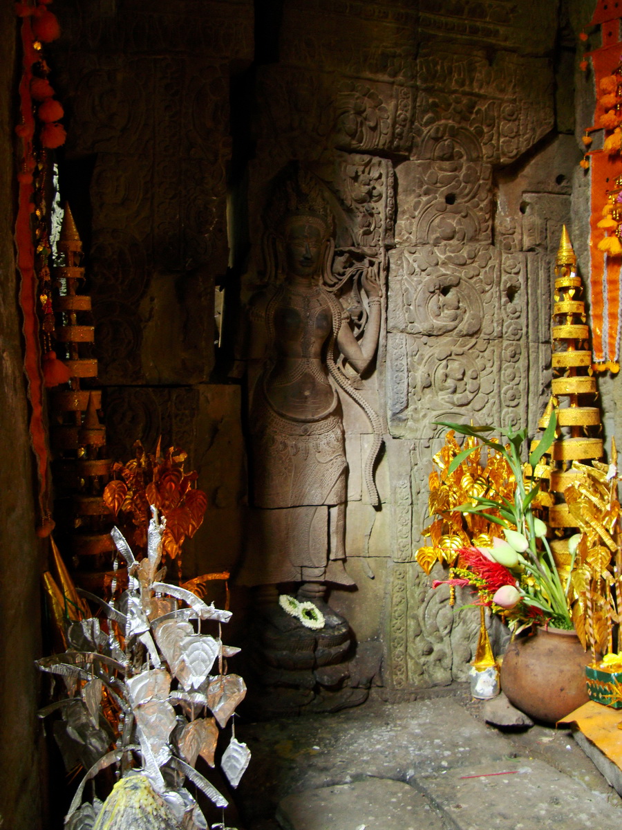 Preah Khan Temple Bas relief main female divinty shrine area 05