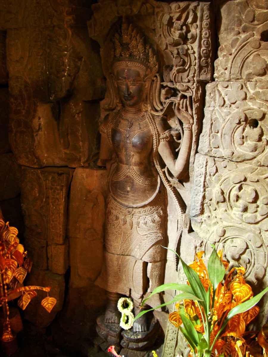 Preah Khan Temple Bas relief main female divinty shrine area 06