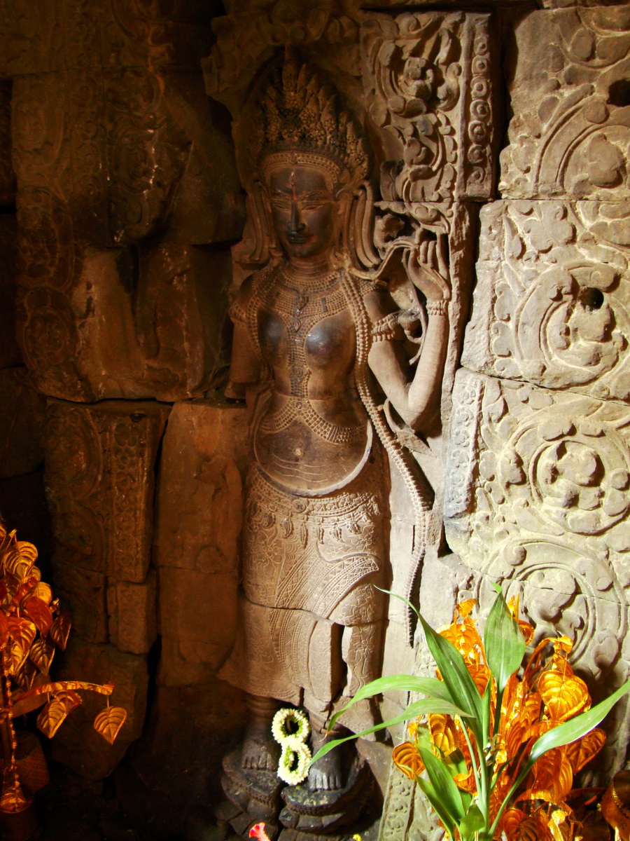 Preah Khan Temple Bas relief main female divinty shrine area 07