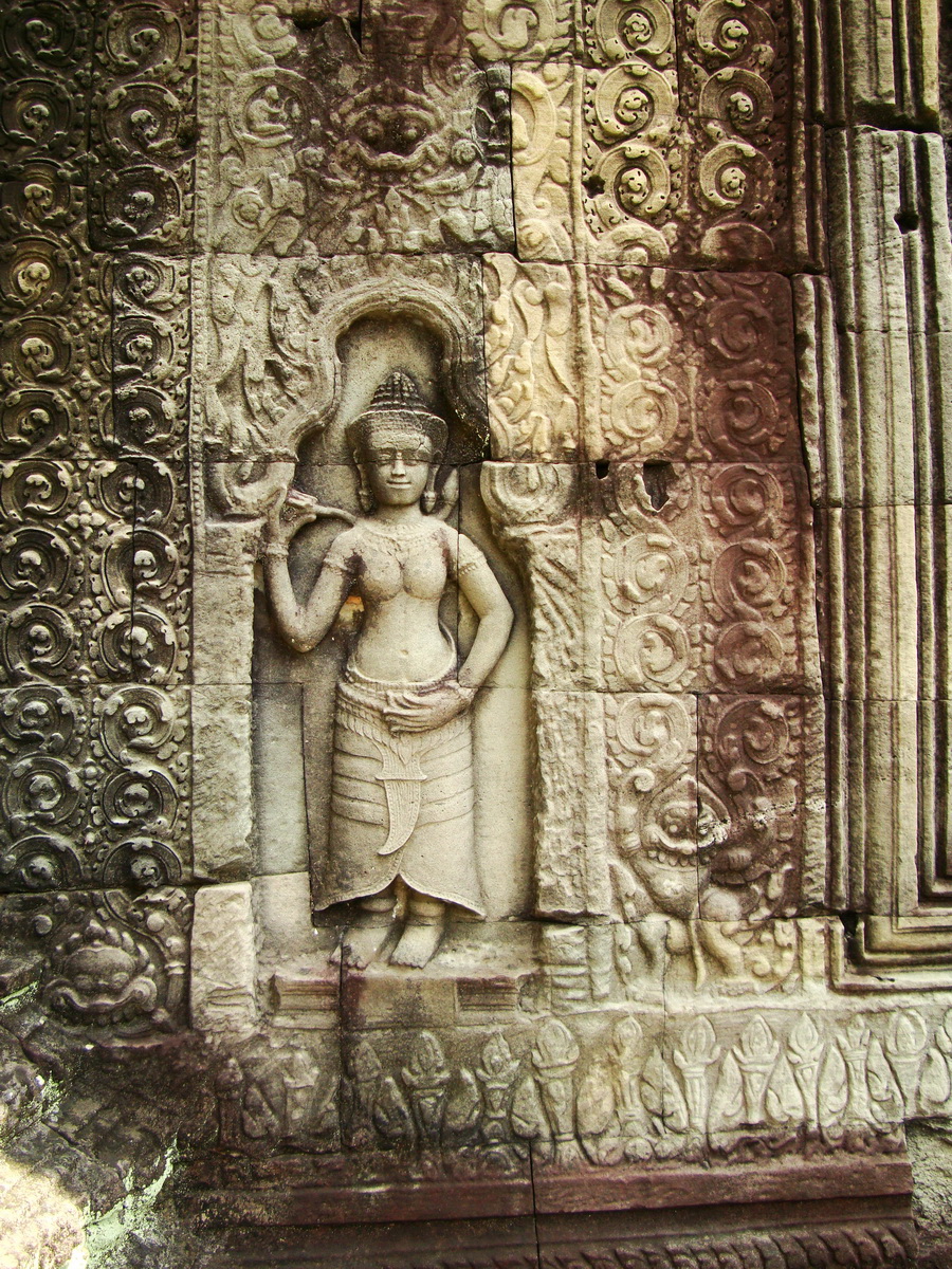 Preah Khan Temple Bas relief male divinty main enclosure 02