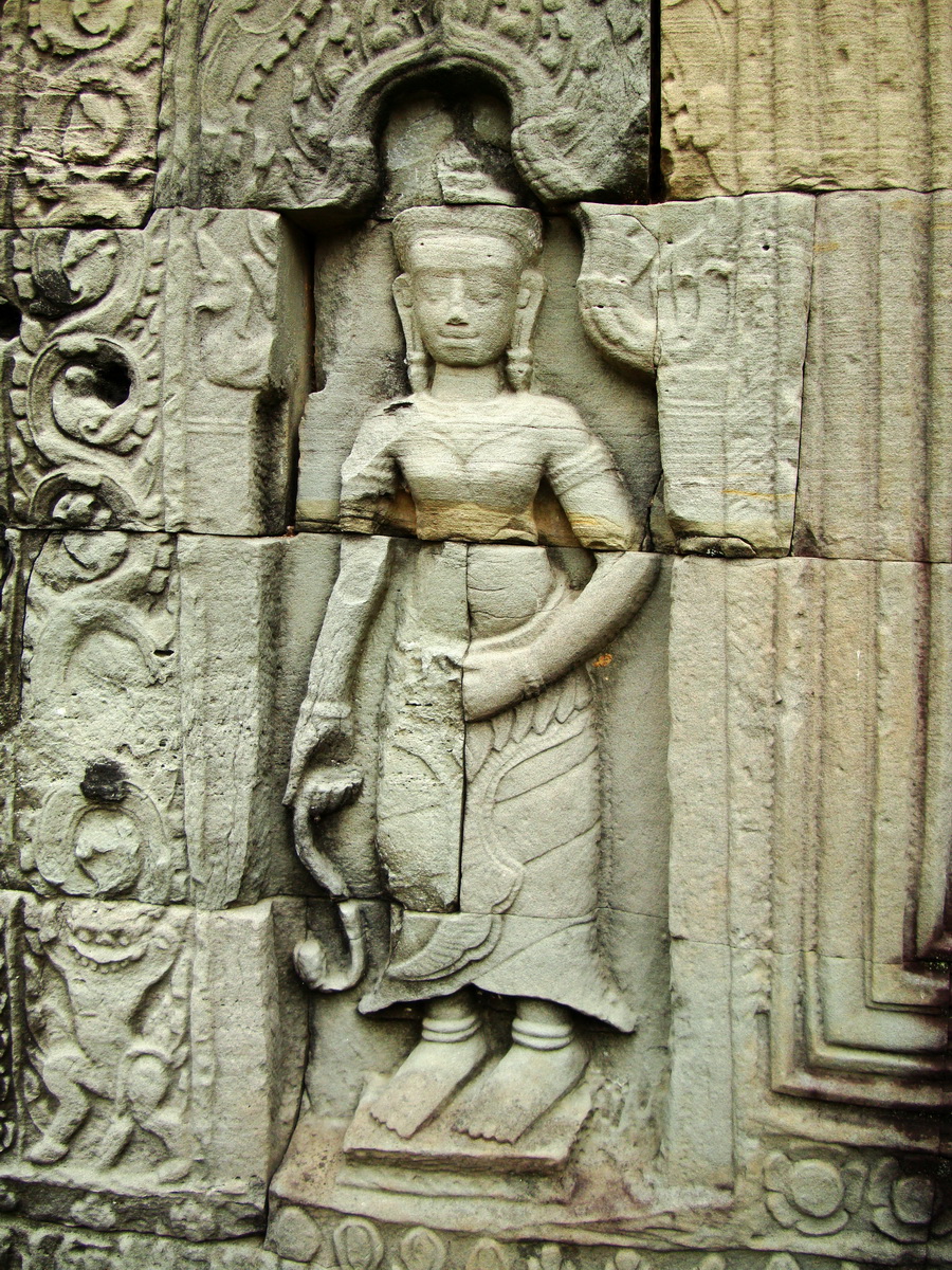 Preah Khan Temple Bas relief male divinty main enclosure 04