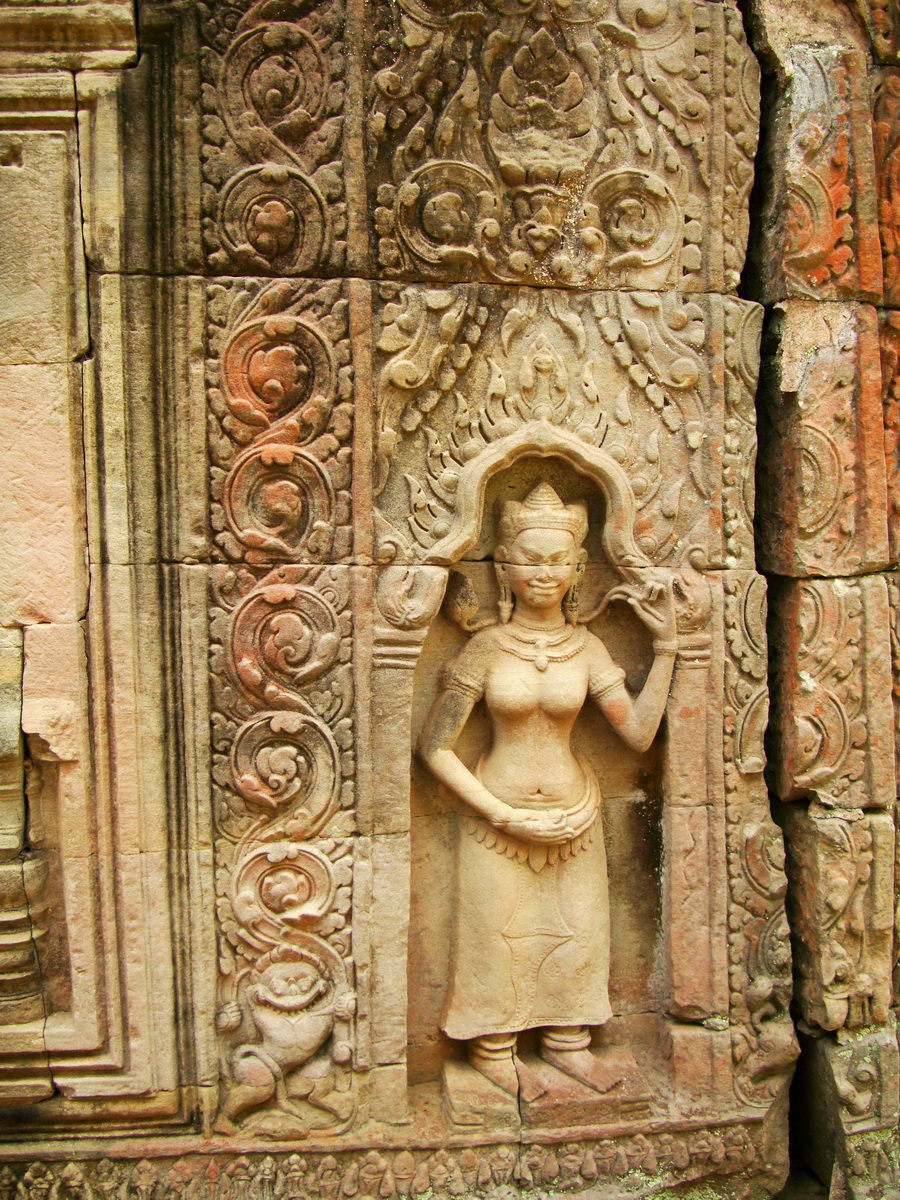 Preah Khan Temple Bas relief male divinty main enclosure 05