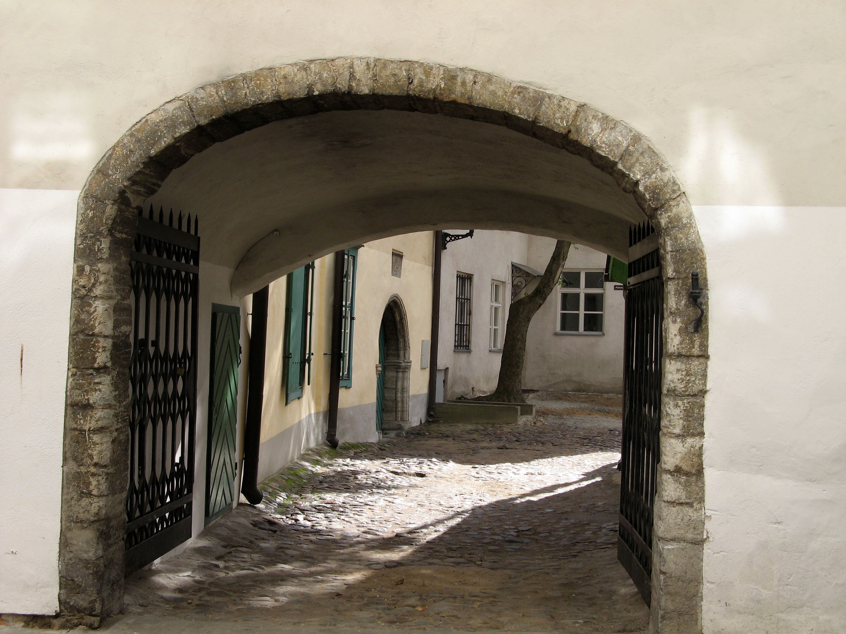 Street view showing the thickness of the castle walls encasing the old medieval city of Tallinn 01