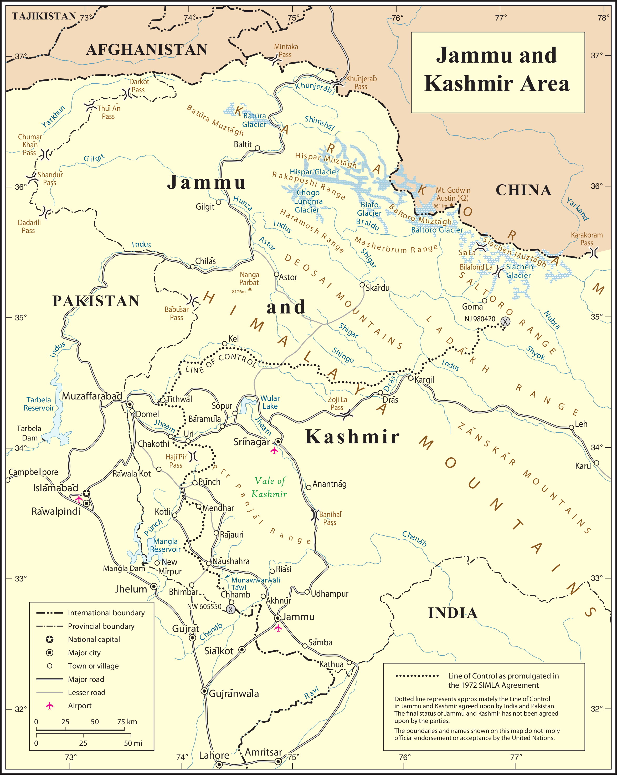 A map drawing of the UN Kashmir Jammu 1972