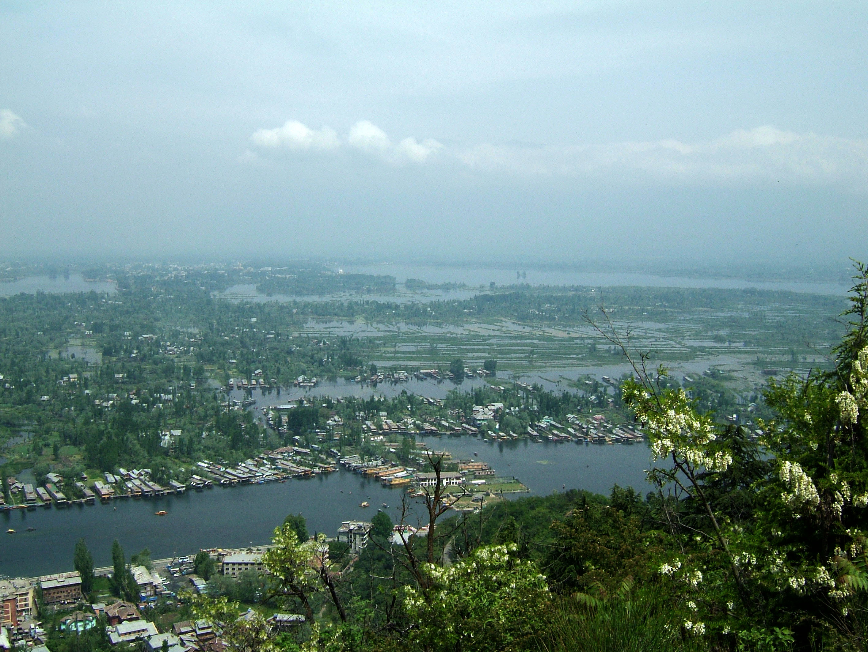 Kashmir panoramic view of Dal Lake and the city of Srinagar India Apr 2008 04