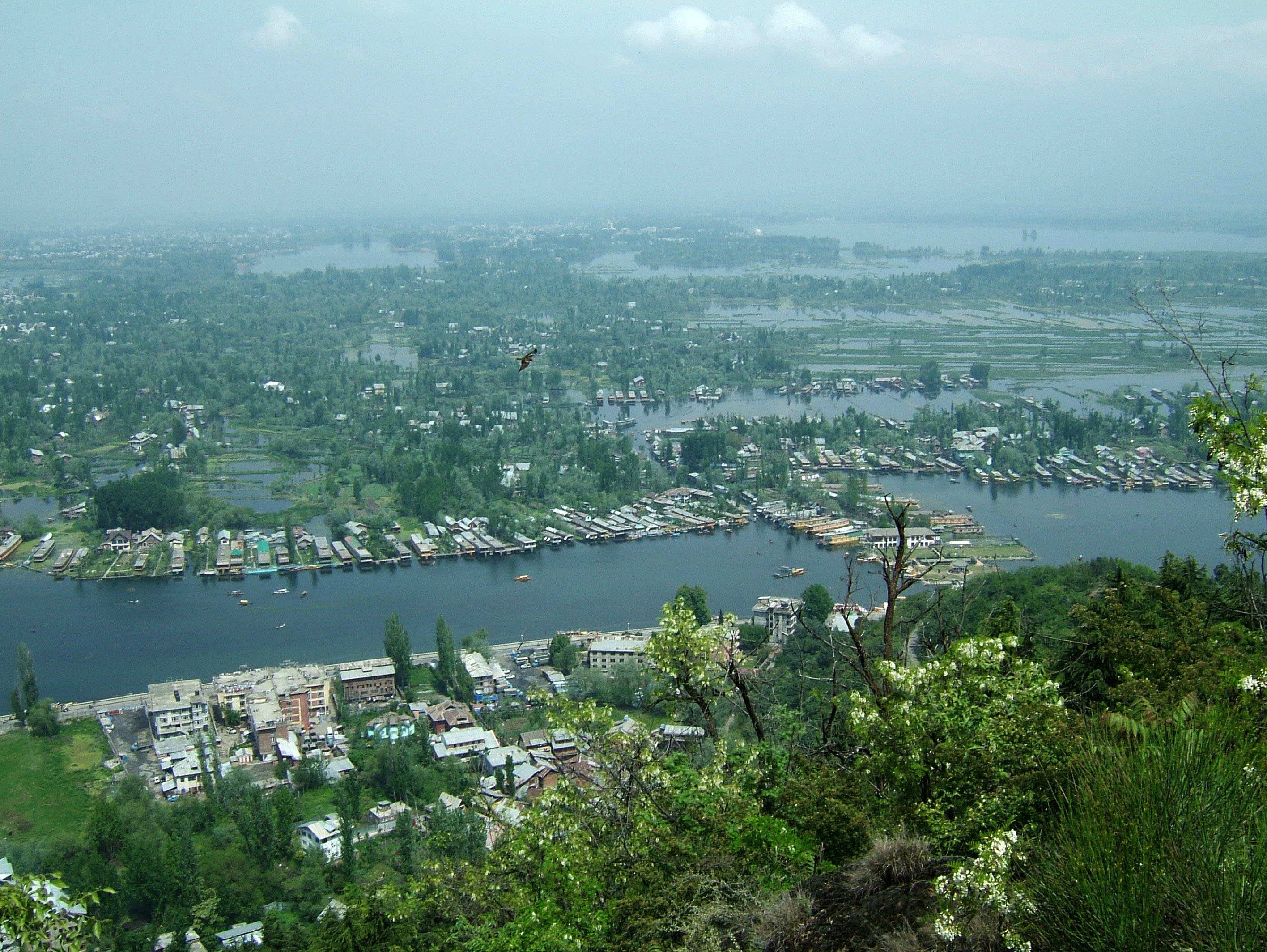 Kashmir panoramic view of Dal Lake and the city of Srinagar India Apr 2008 05