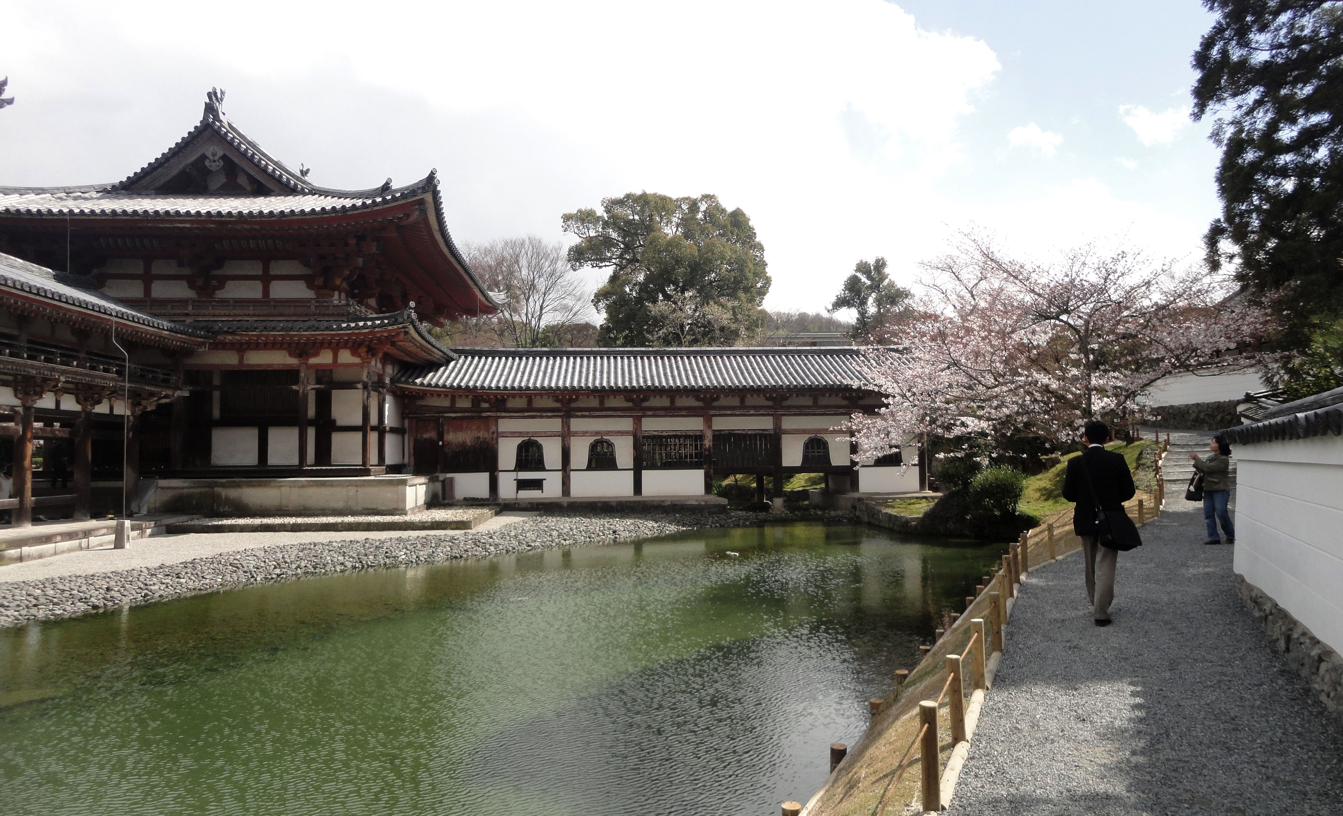 Byodo in Buddhist temple left side entrance Phoenix Hall Kyoto Japan 03
