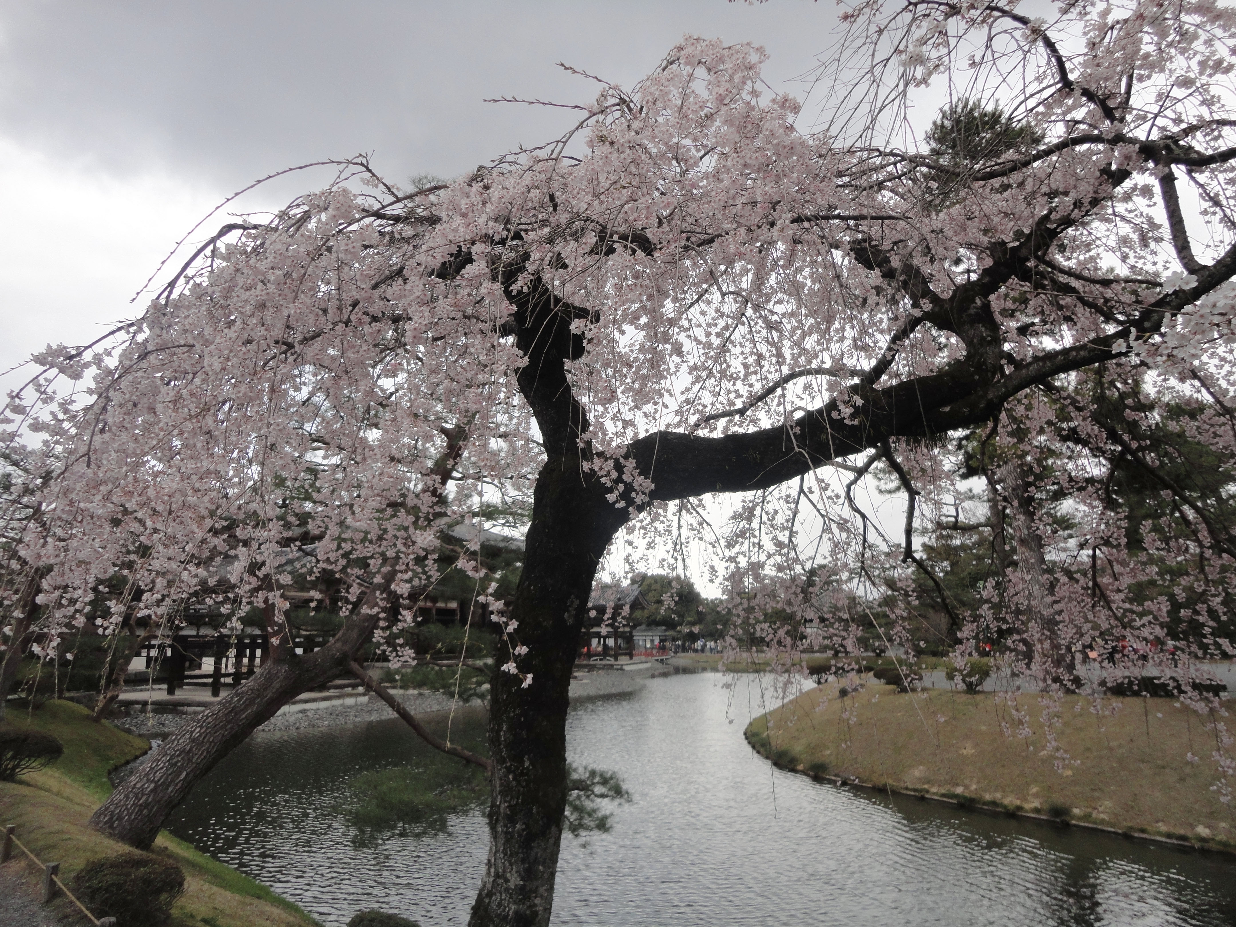 Pink Cherry tree blossoms Byodo in temple Jodo shiki garden Kyoto Japan 01
